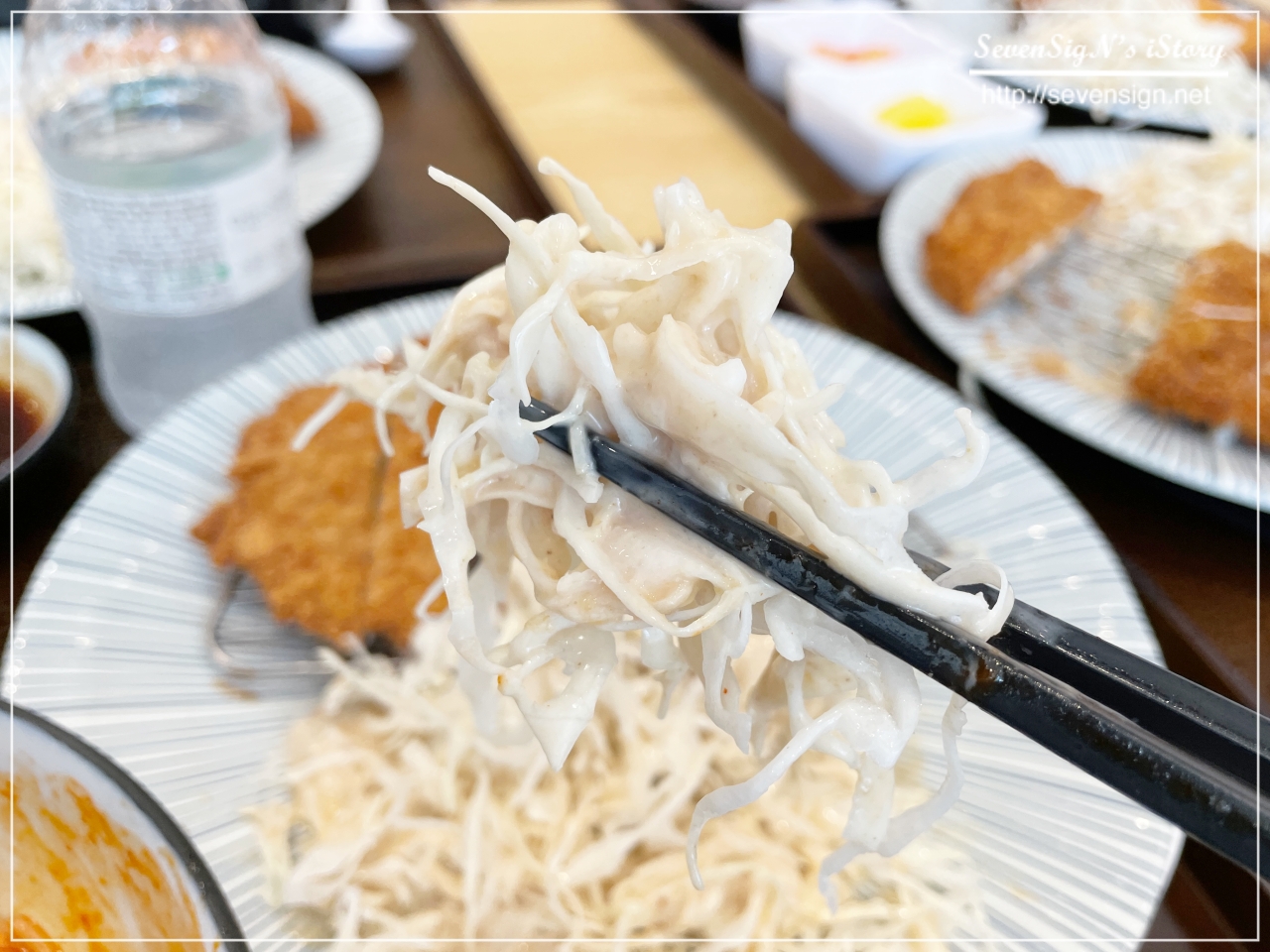 돈까스랑 번갈아먹으며 먹으면 서로의 맛을 더 잘 느낄 수 있게 해주네요.