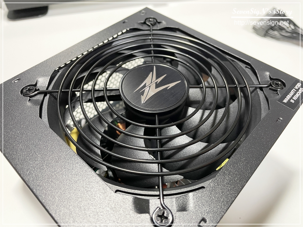 | 잘만 MegaMax 500W 80PLUS STANDARD 컴퓨터파워는 블랙컬러의 묵직한 디자인으로 탄탄한 설계감과 함께 안정적인 느낌을 전해주는 파워입니다. 팬 그릴 중앙에는 멋진 잘만로고도 있는데, 조립하고 나면 밖으로 노출될일이 없어서 아쉽더군요 ㅎ 쿨링팬은 120mm HDB Fan 이 장착되어 정숙한 소음으로 온도를 낮춰줍니다.