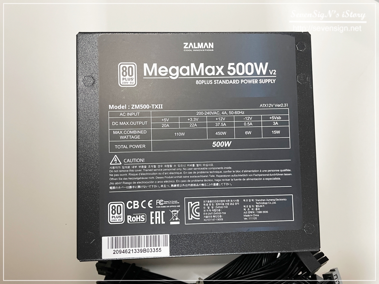 가성비파워 컴퓨터파워추천 , 잘만 MegaMax 500W v2 80PLUS STANDARD