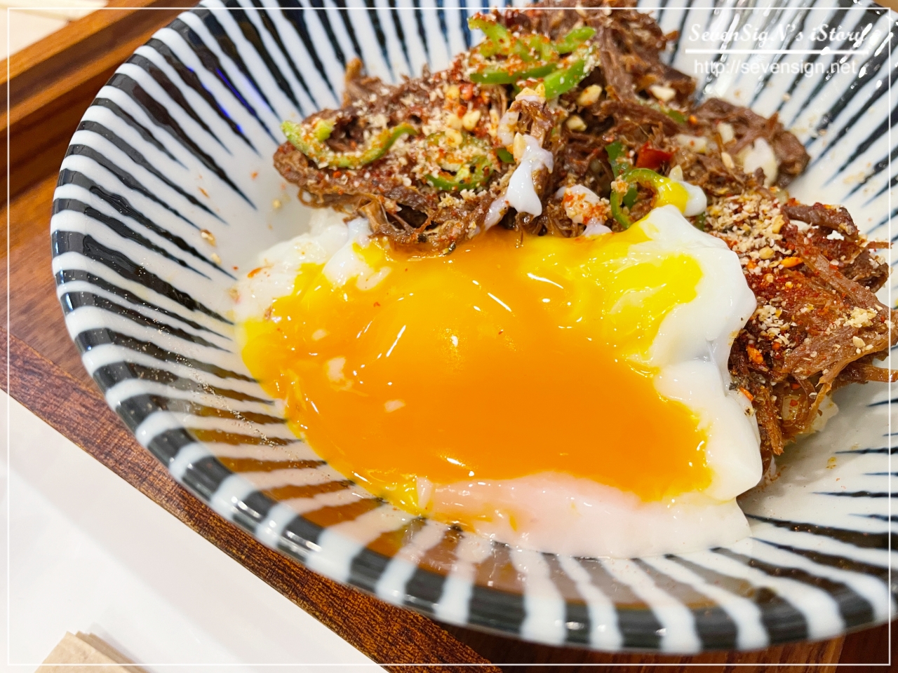 역시 저온조리한 돼지고기에 특제간장소스, 그리고 수비드계란이 있고요,