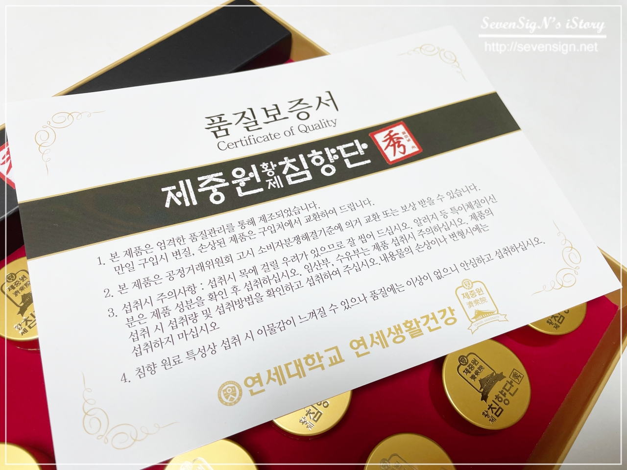 연세대학교 연세생활건강에서 엄격한 품질관리르 통해 만들었다는 품질보증서도 있습니다.