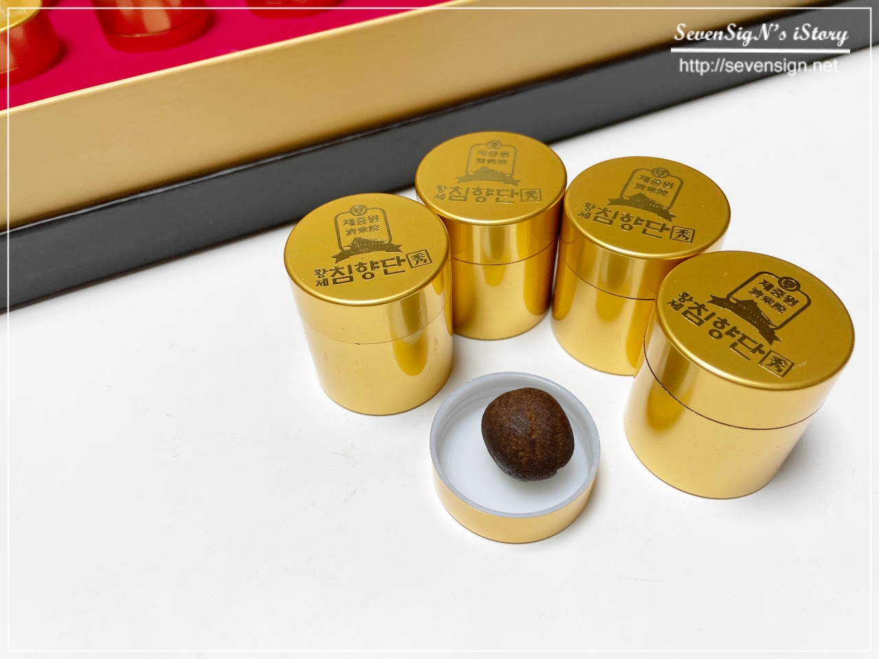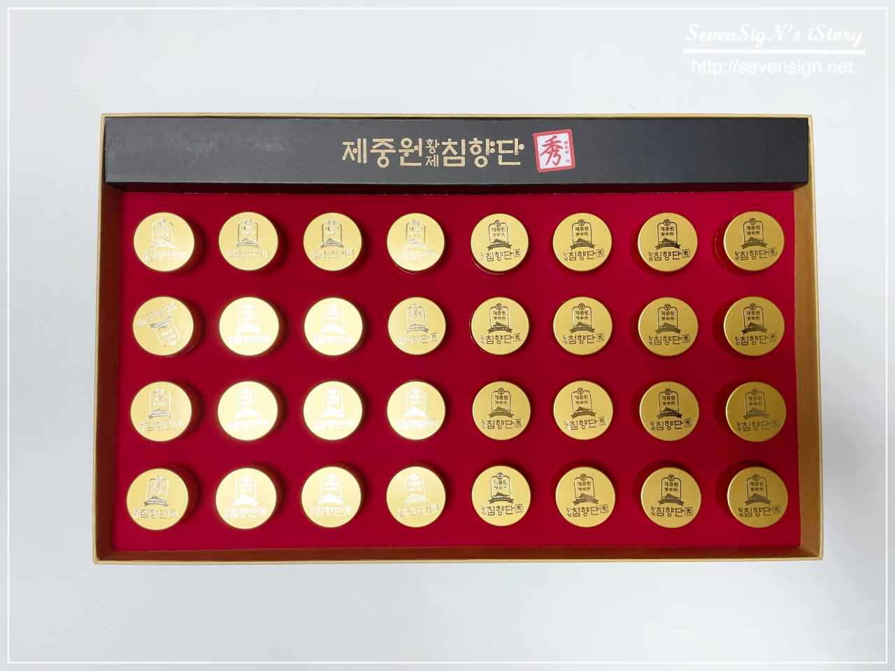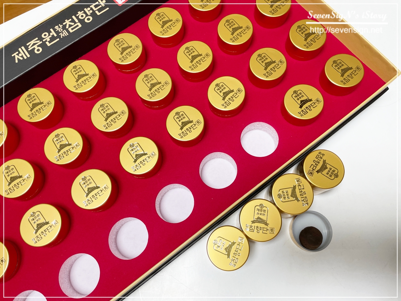 인도네시아산 침향 분말을 사용해 먹기 좋은 크기로 만들어 32개의 환을 한상자에 담았거든요.