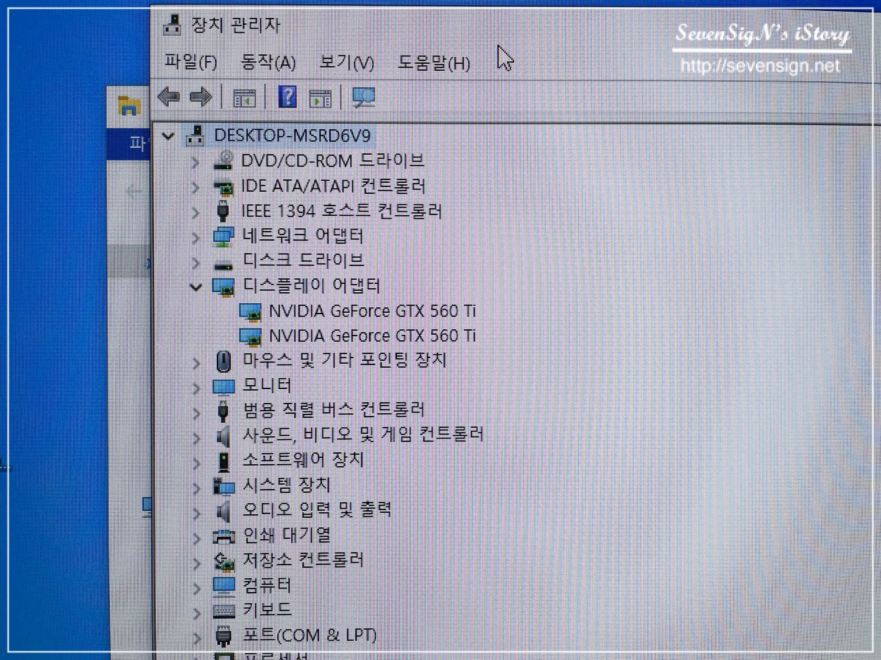| 그래서 PC를 끄고, 정상인 카드도 연결해서 둘다 Sli로 연결했거든요. 장치관리자에서 2대 모두 정상으로 잡히네요 ~ ㅠ (감동의 눈물)