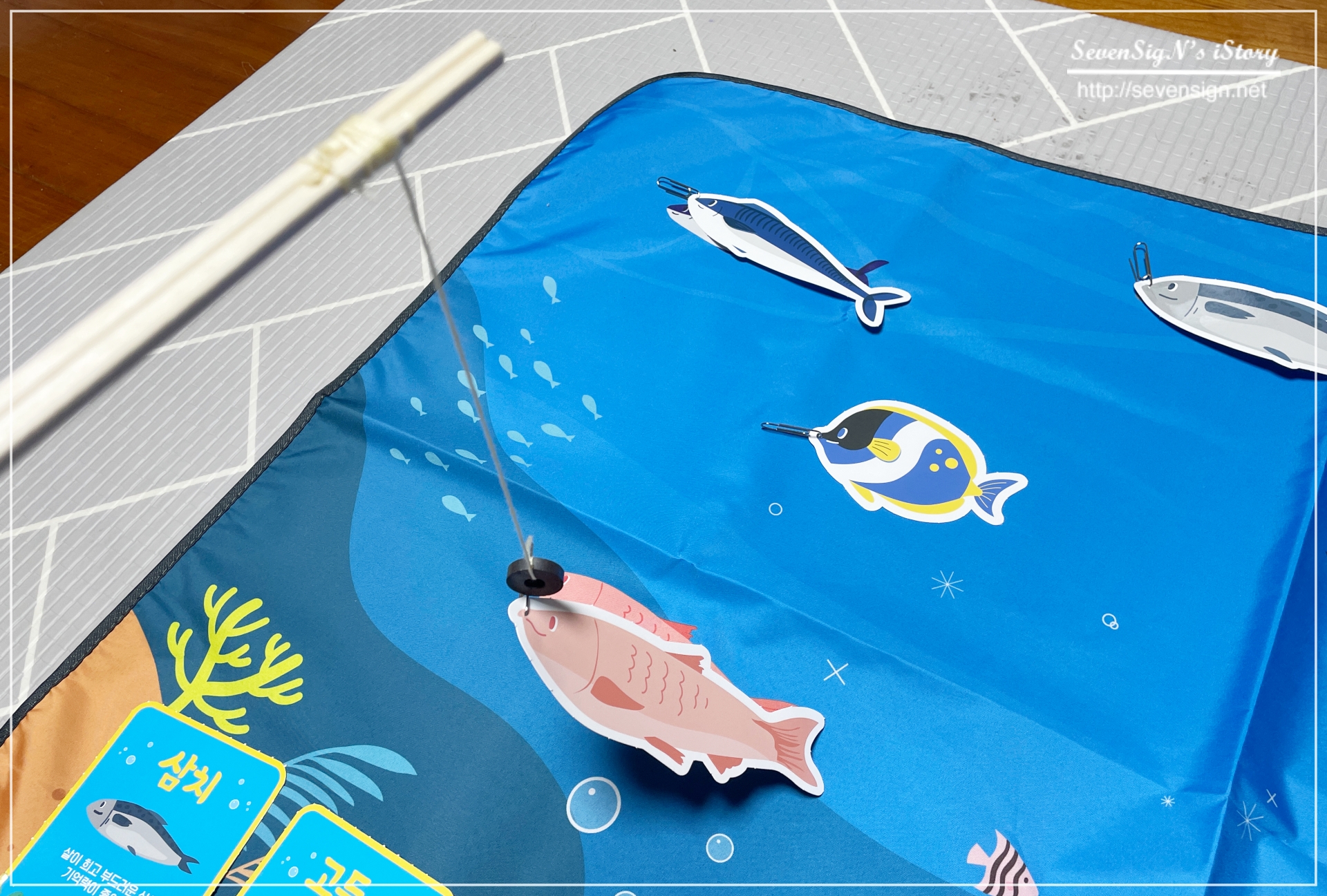 그래서 낚시 놀이판을 펼치고 물고기들을 자리에 놓아주었습니다~