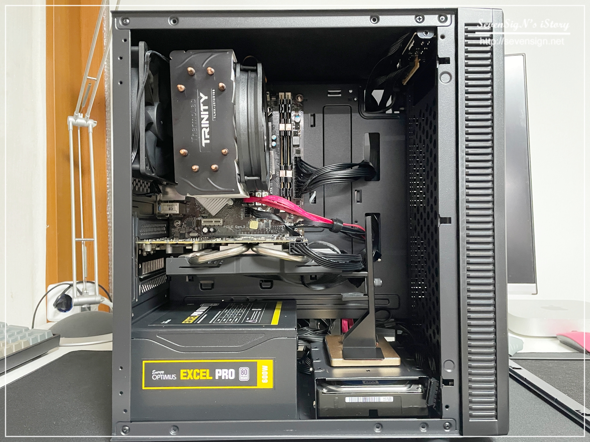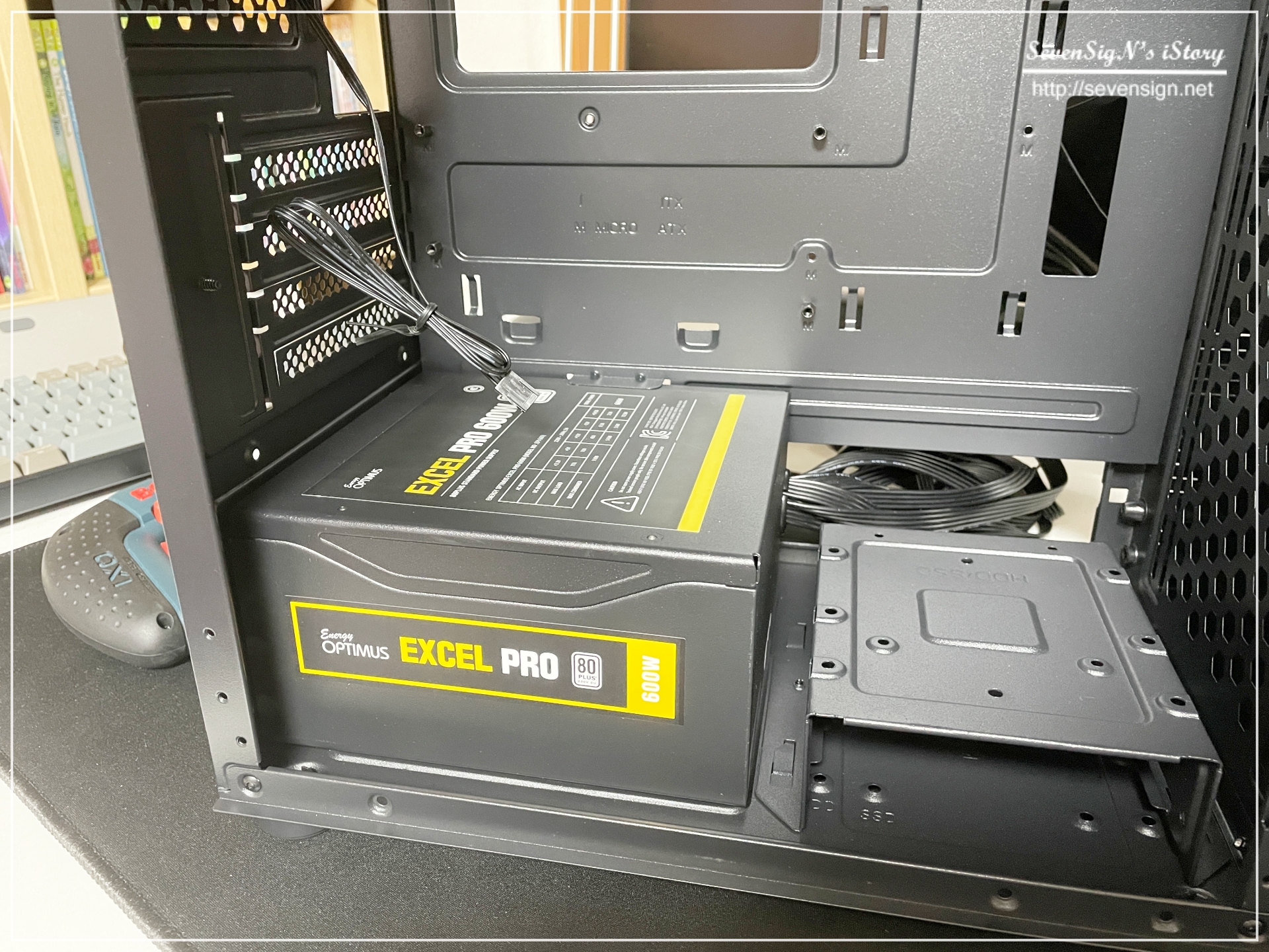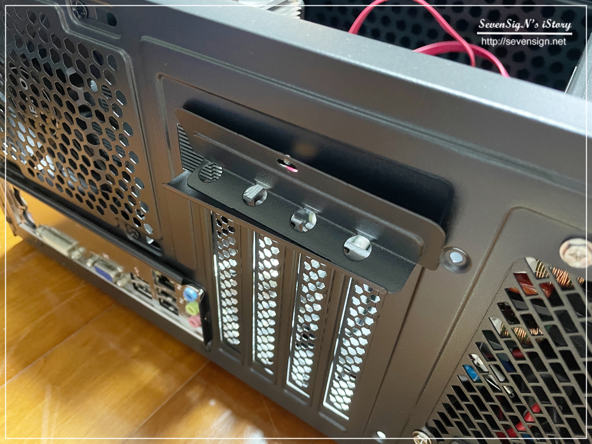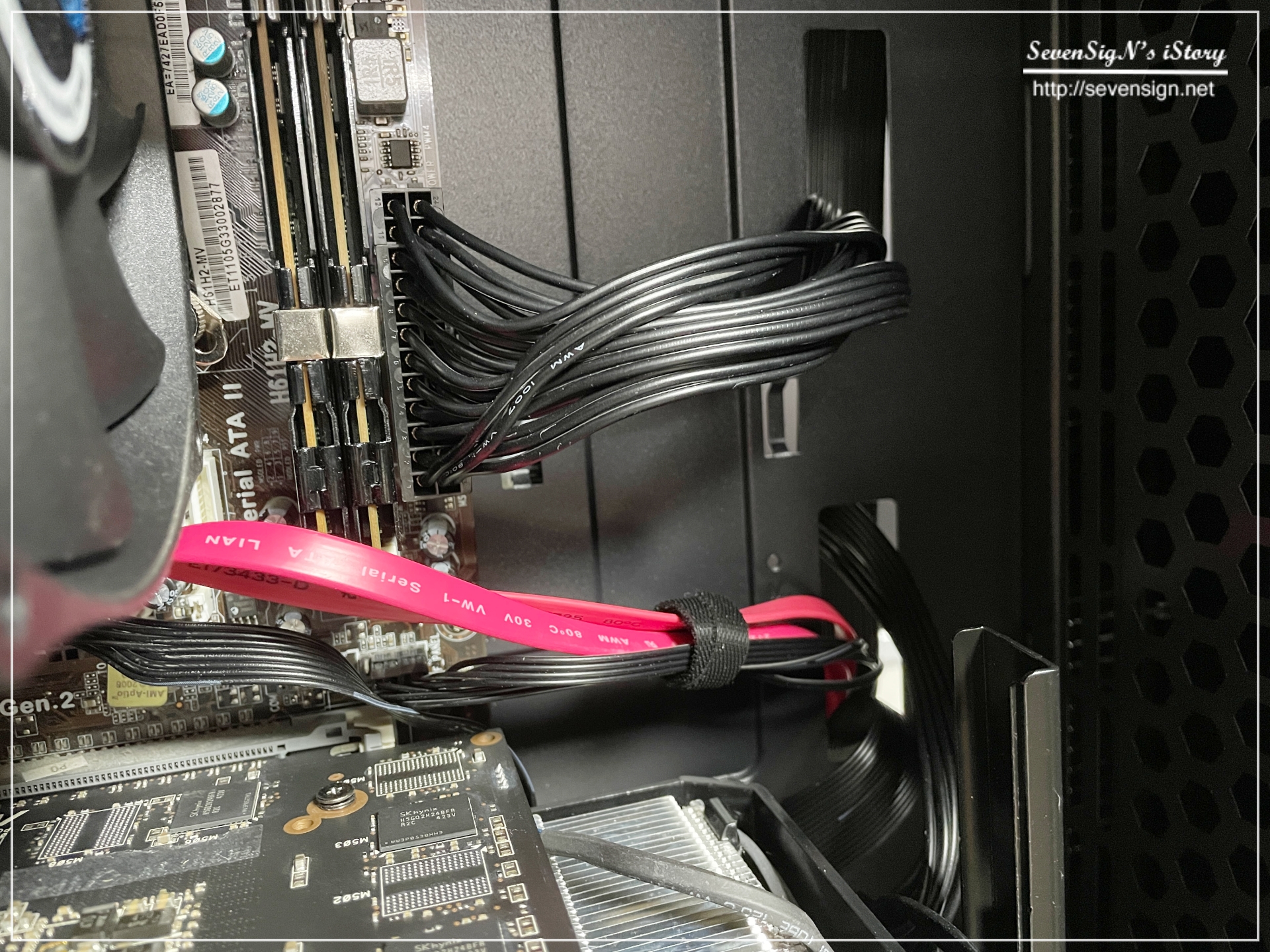 | 앱코 NCORE S10M 사일런티 II 케이스 내부의 홀을 이용해 케이블을 밖으로 빼내어 반대편 공간에서 정리를 해주는거죠.