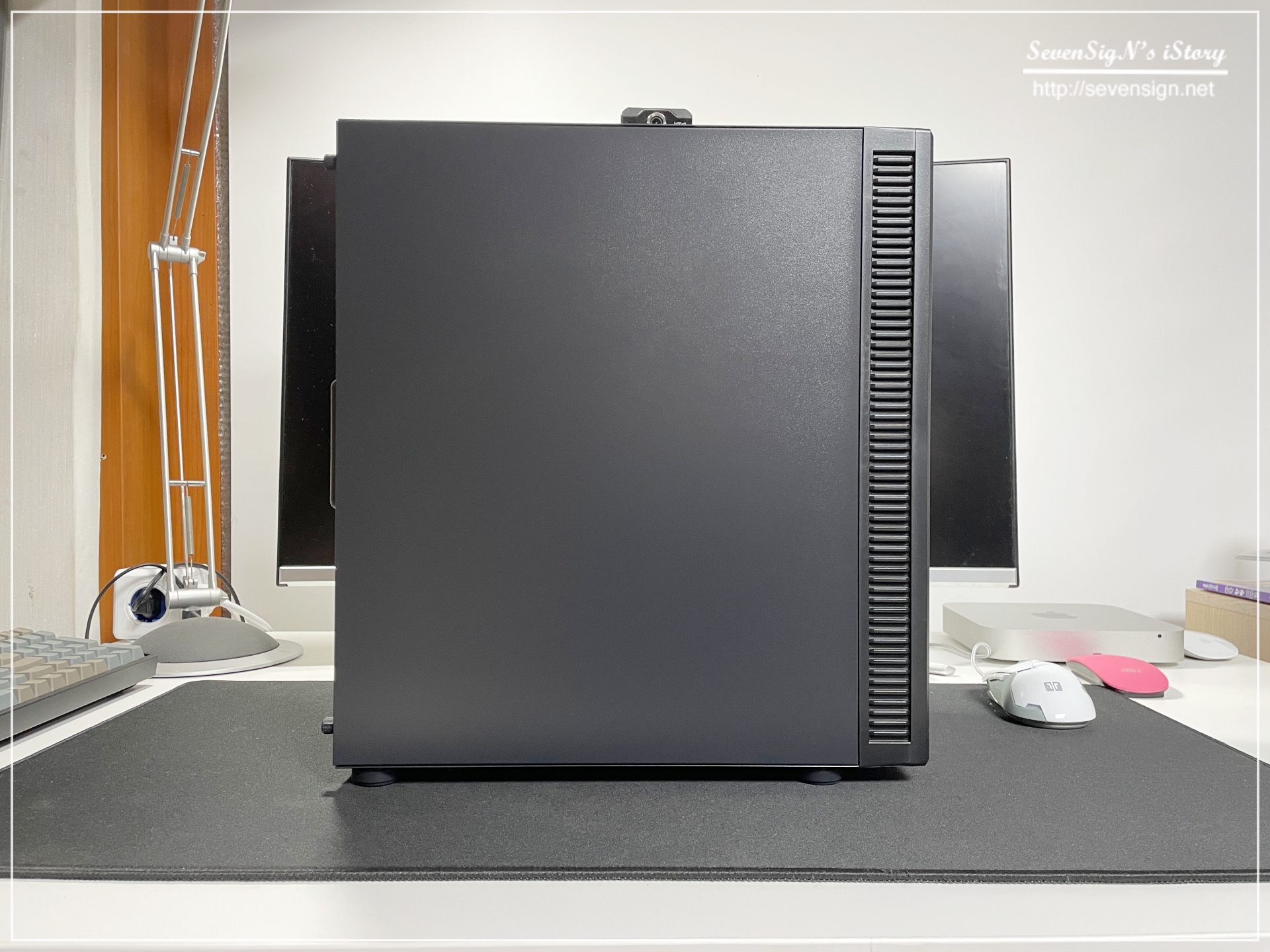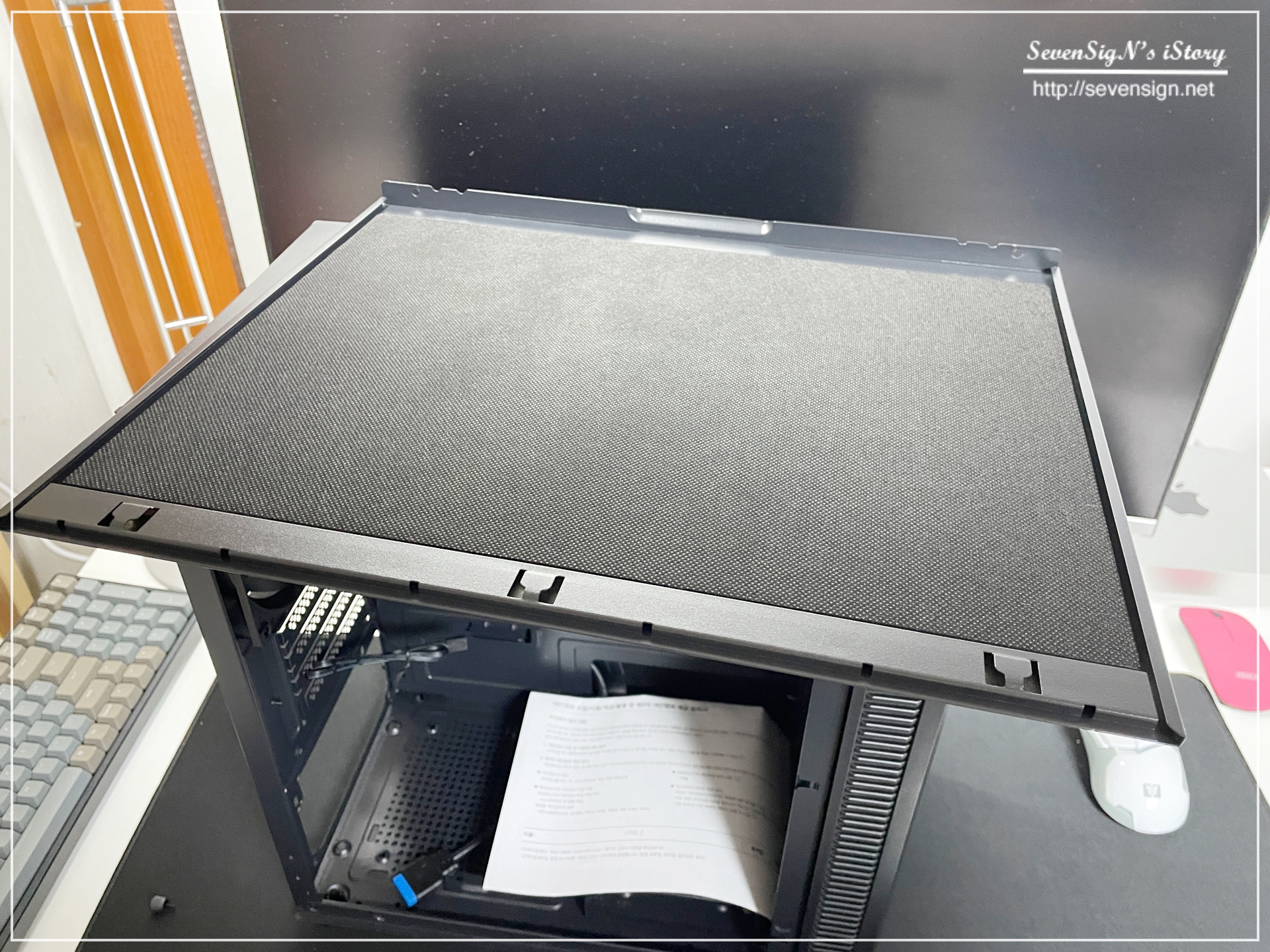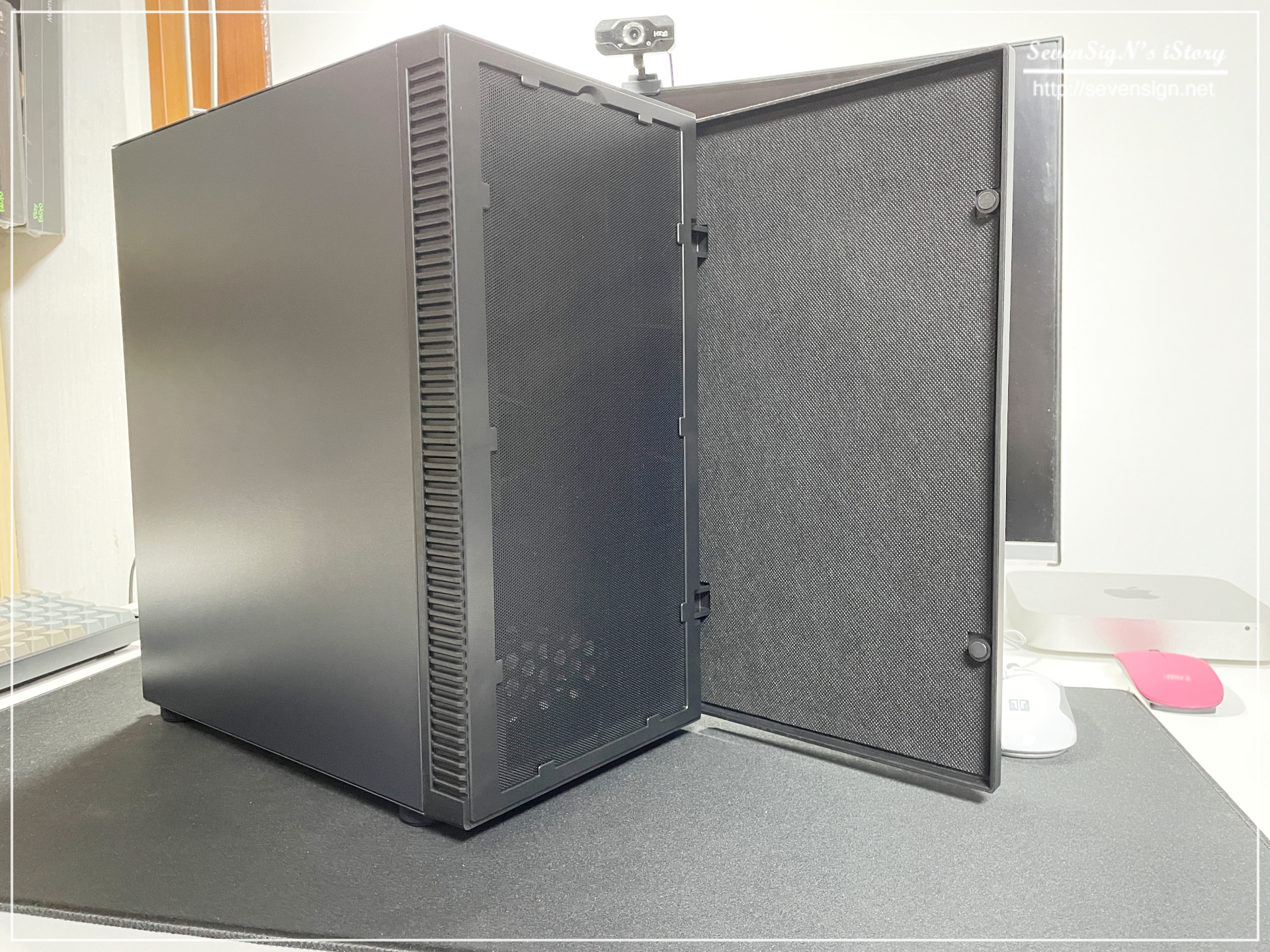 | 측면 덮개를 오픈한 모습인데요, 측면 덮개에도 꽉~차게 방음패드가 부착되어 있어서 저소음 케이스라는 타이틀에 어울리도록 설계되어 있다는 것을 느낄 수 있었습니다.