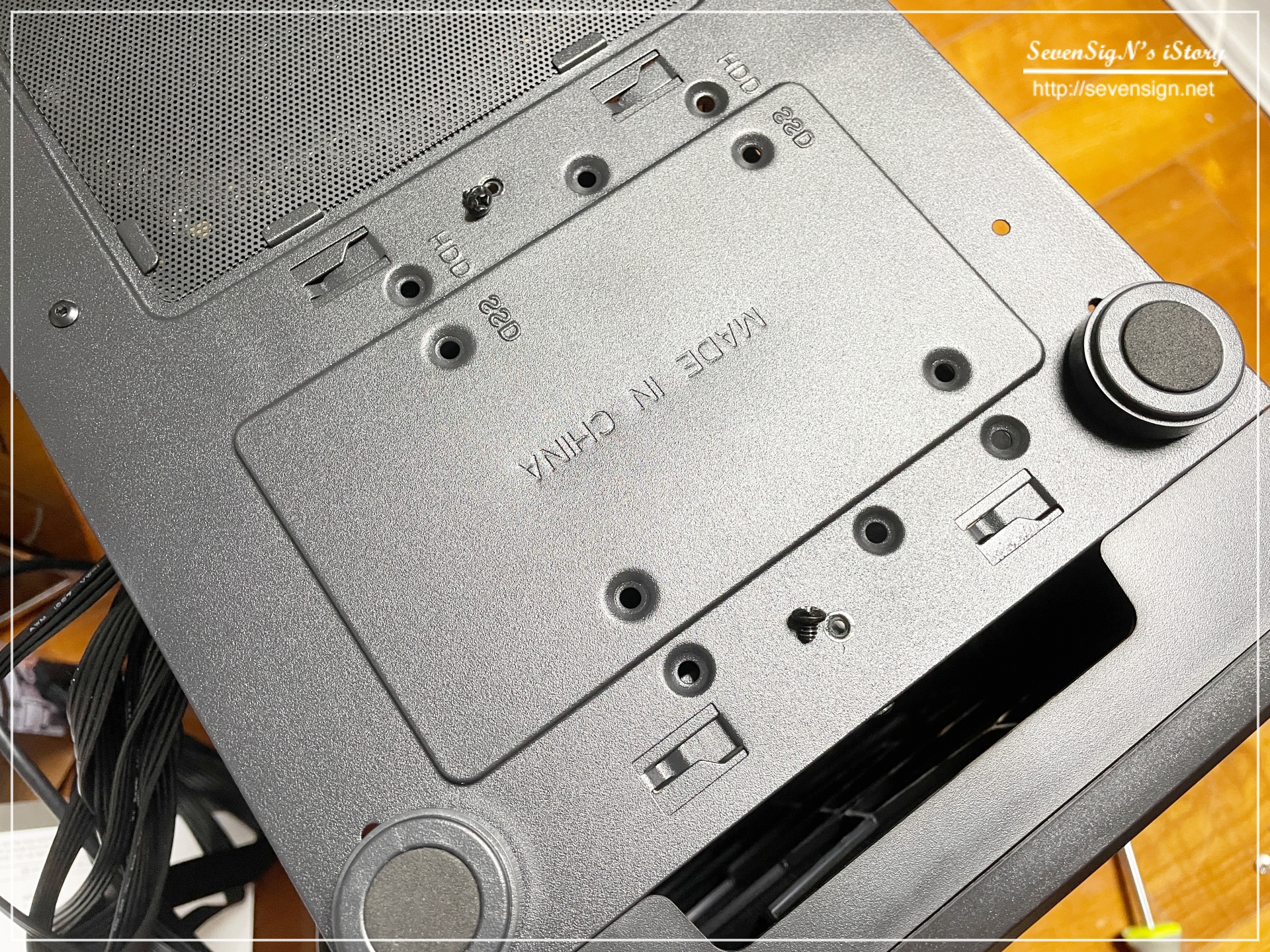 | 그 다음에 홈에 끼워준 후 다시 나사로 고정 시켜주면 HDD와 SDD 장착이 완료됩니다. 참고로 앱코 NCORE S10M 사일런티 II 케이스에는 최대 SSD 2개와 HDD 2개 장착이 가능합니다.