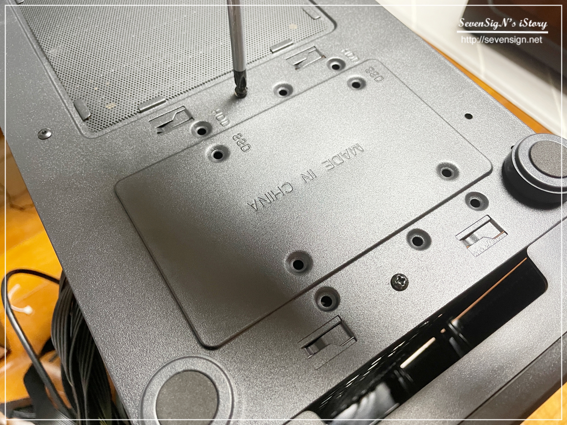 | 바닥을 보면 나사가 있는데, 나사를 제거하면 스토리지 베이를 분리할 수 있습니다.