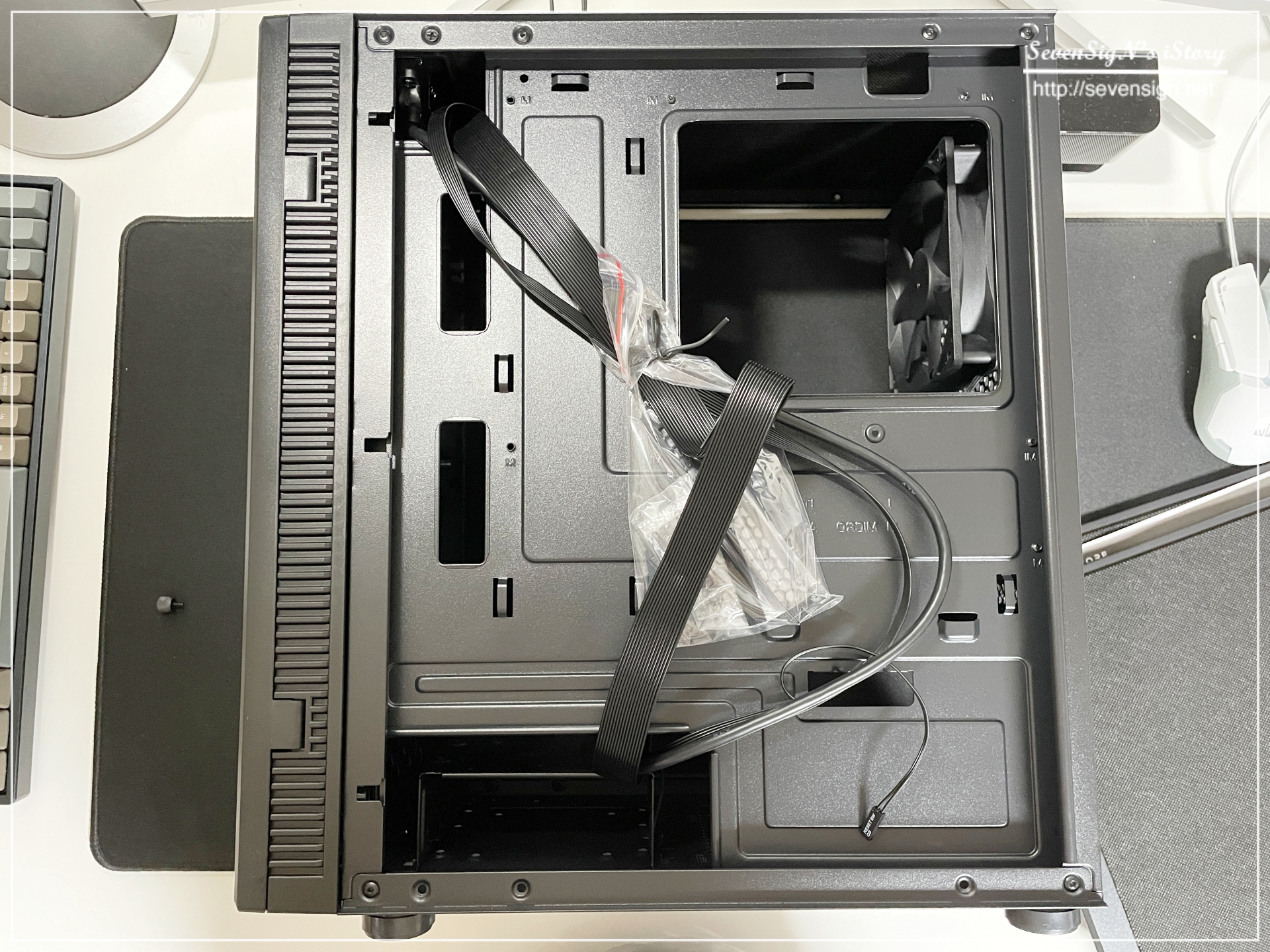| 앱코 NCORE S10M 사일런티 II 케이스 반대쪽 측면도 개봉해보면 선정리를 위한 공간이 준비되어 있는 걸 볼 수 있습니다.