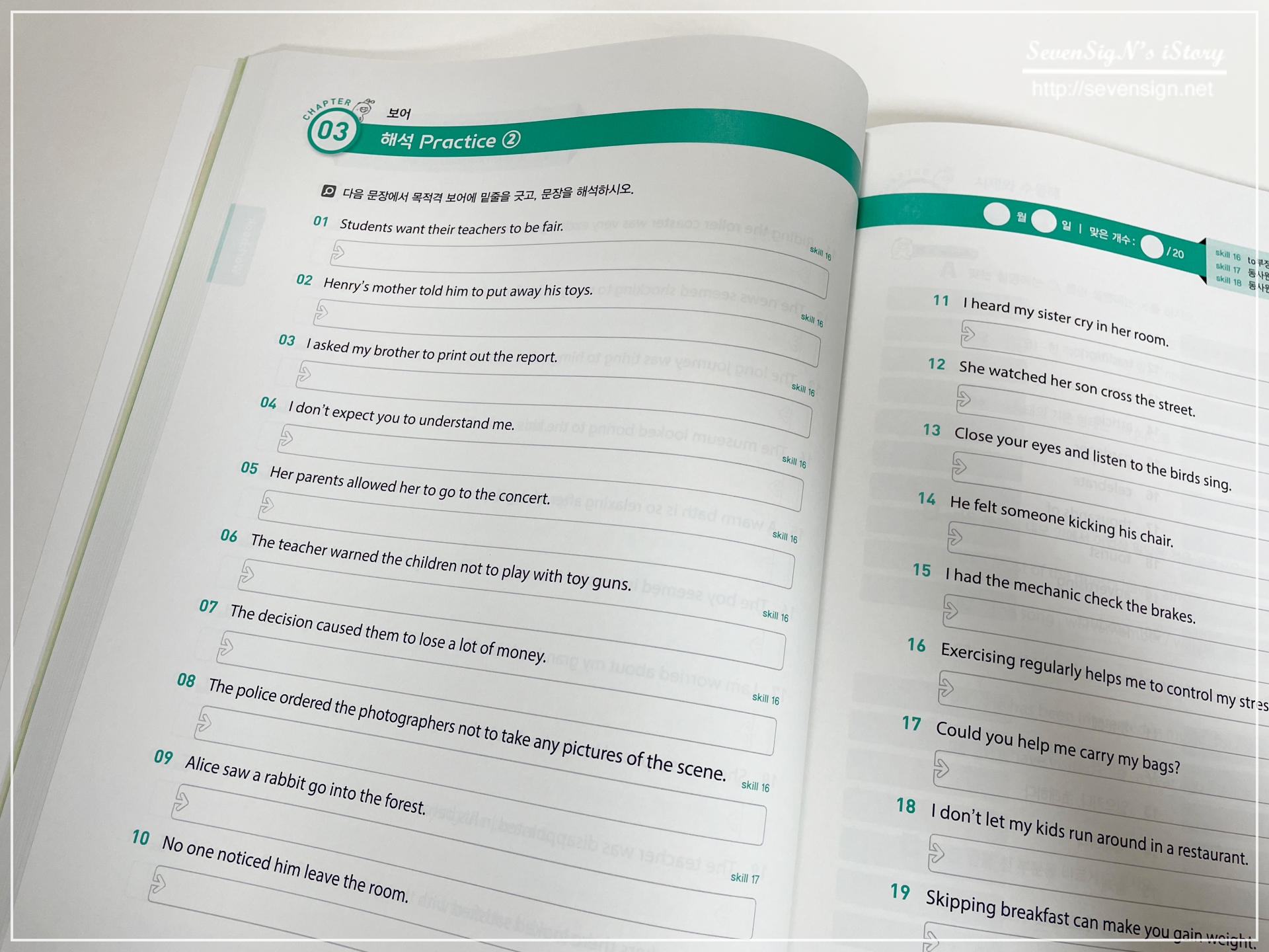 중학영어 문장해석연습의 좋은 점인데요, 문제로만 구성되어 있어서