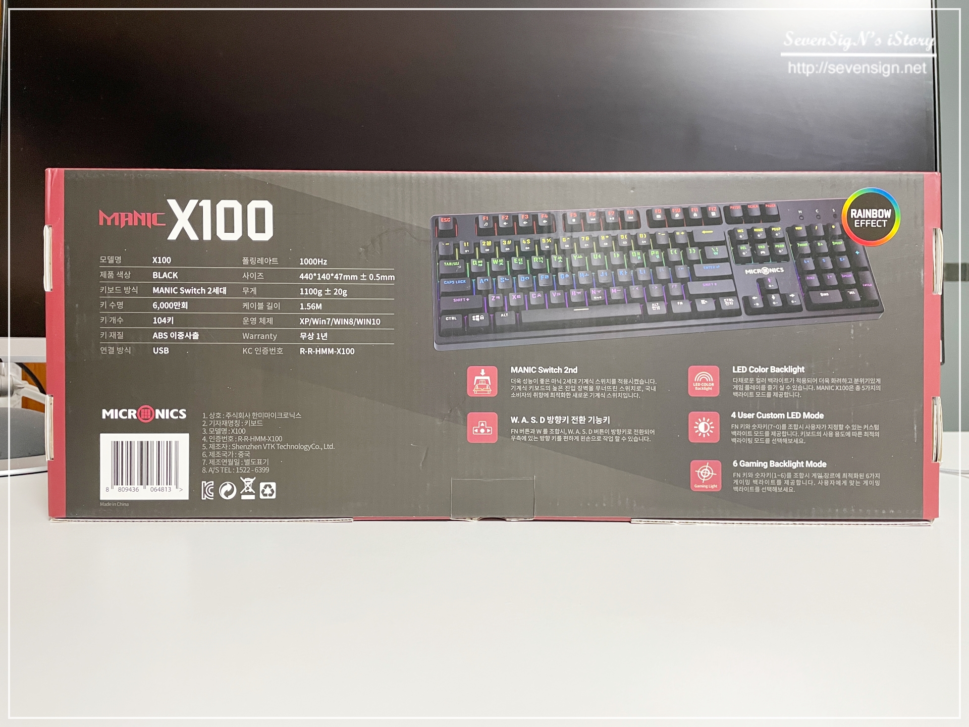 가성비 기계식 키보드, 마이크로닉스 MANIC X100 게이밍 키보드