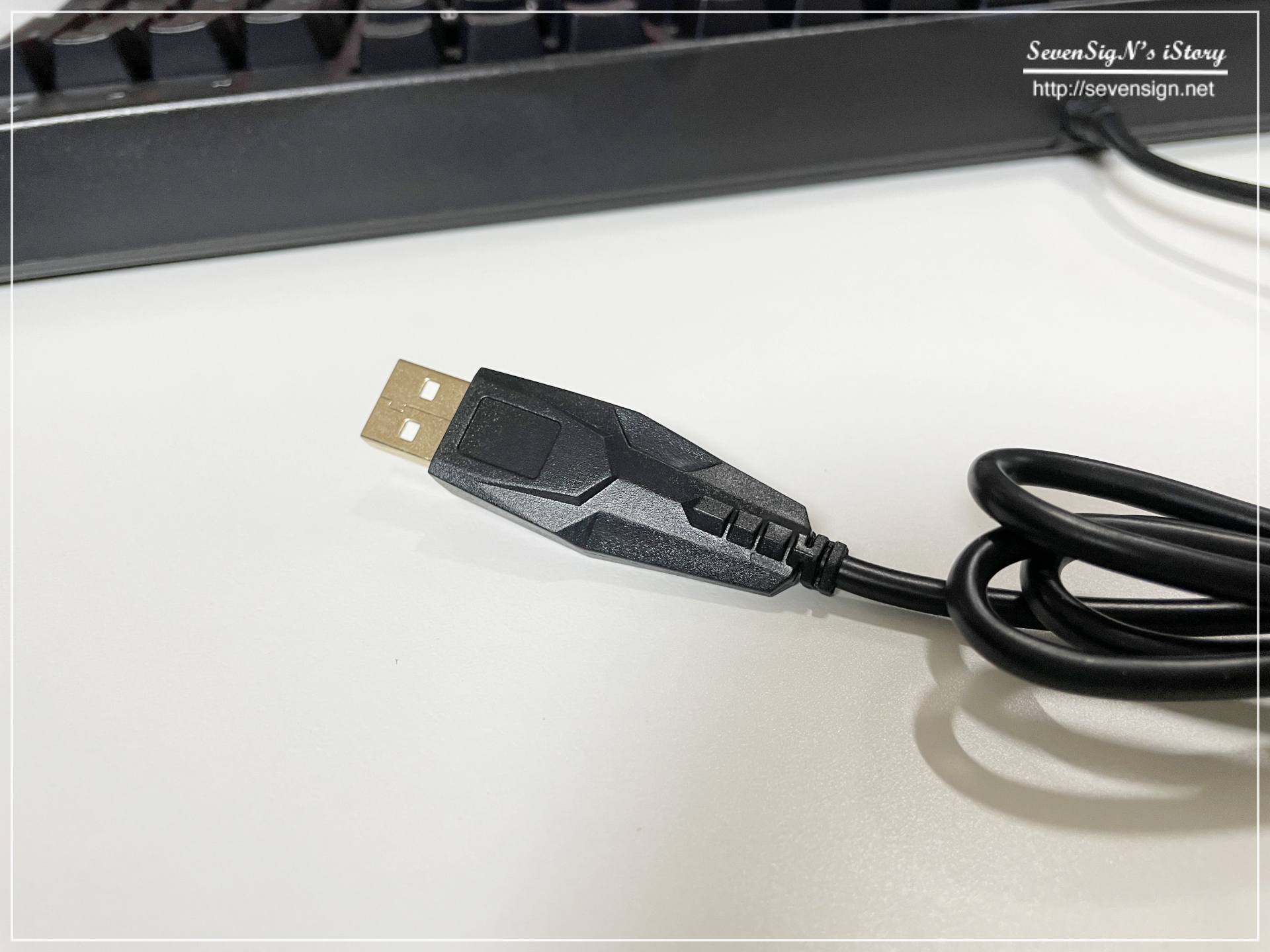 | 본체에 연결하는 USB포트는 금도금 처리가 되어서 데이터 송수신 간 발생할 수 있는 노이즈를 최대한 억제하며 응답속도를 향상시키는데 좋다고 합니다. 아래 사진에서는 안보이고, 위위 사진에서는 보이는데 노이즈 필터도있거든요.