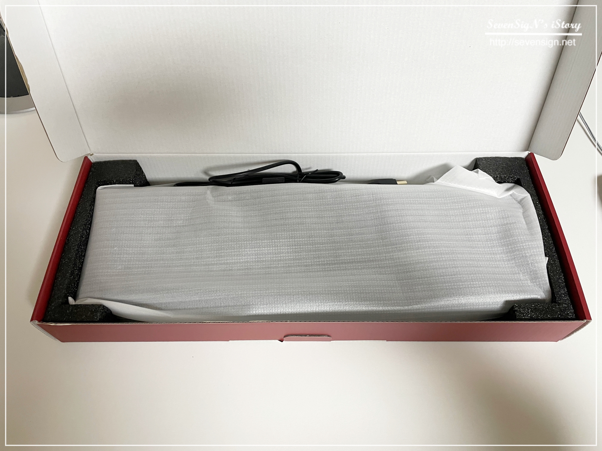 | 패키지를 개봉하면 키보드가 포장재에 잘 보관되어 있습니다.