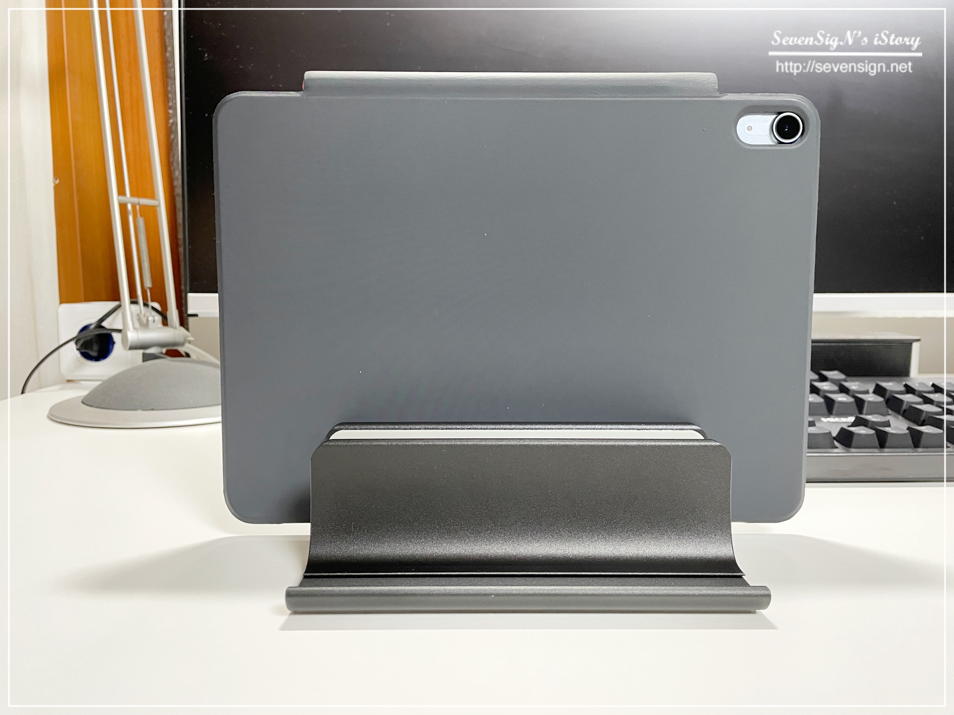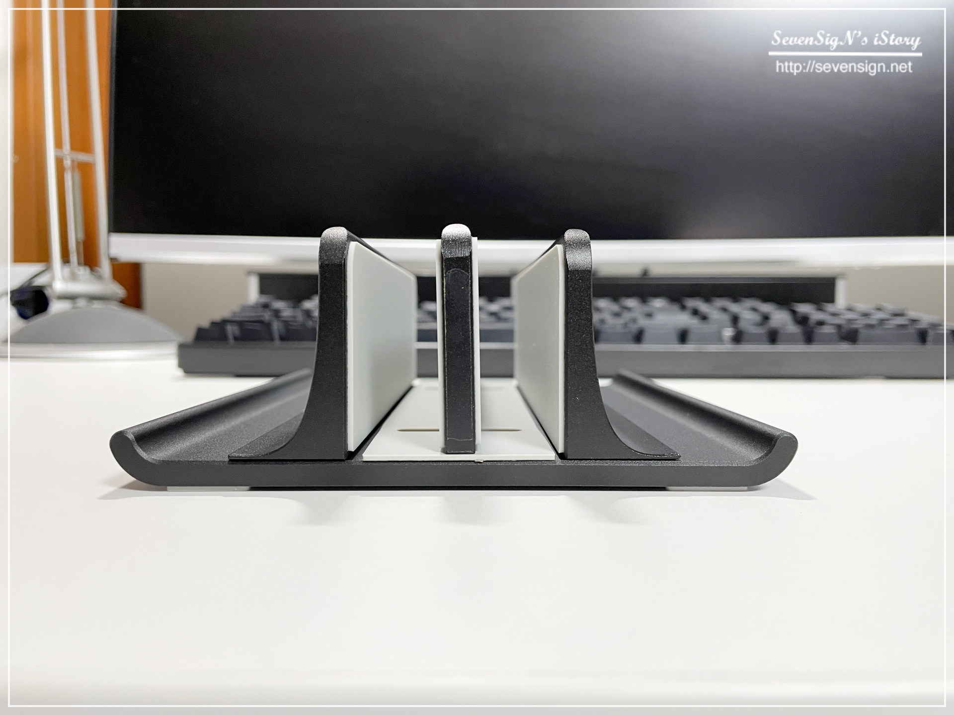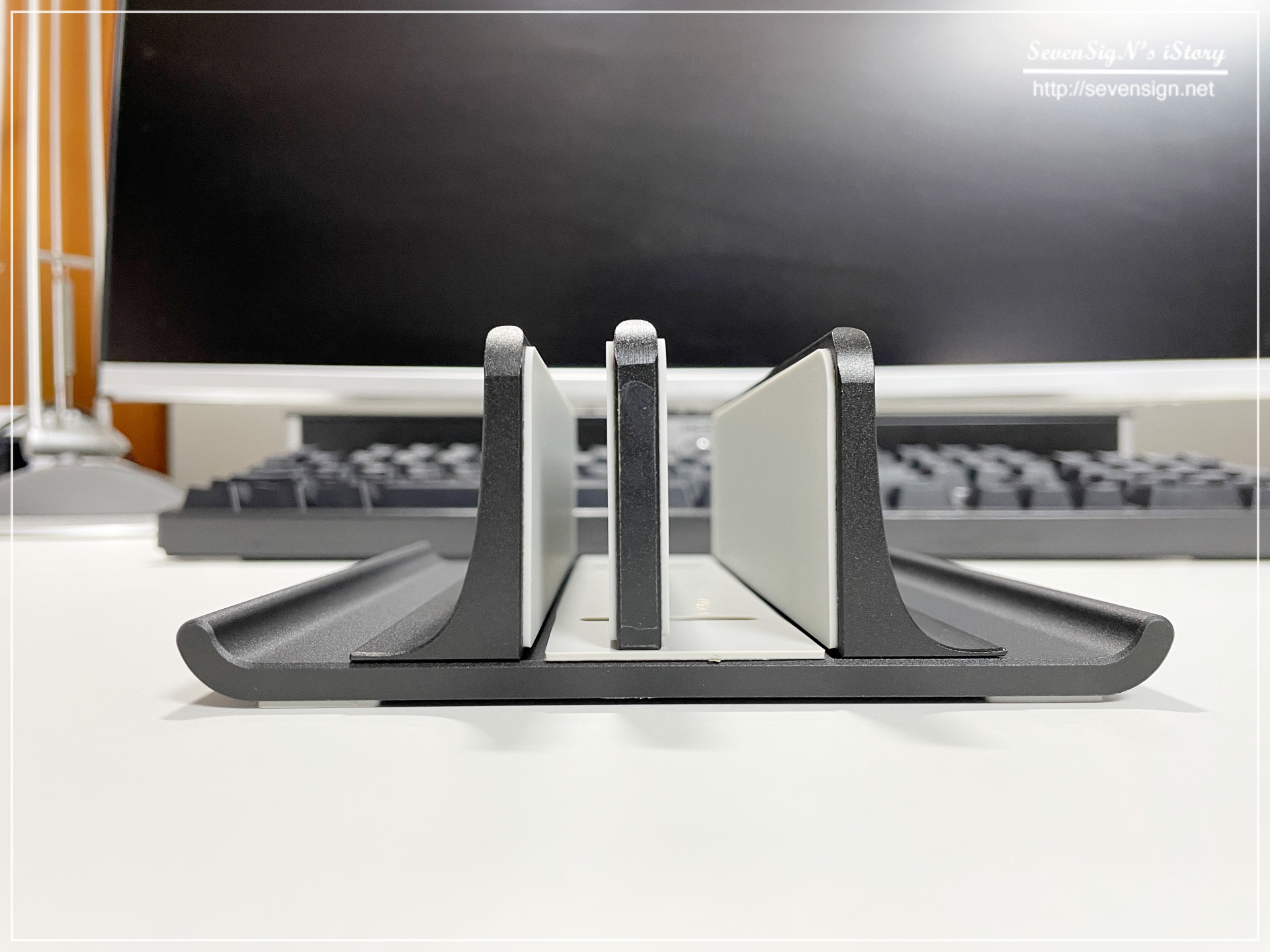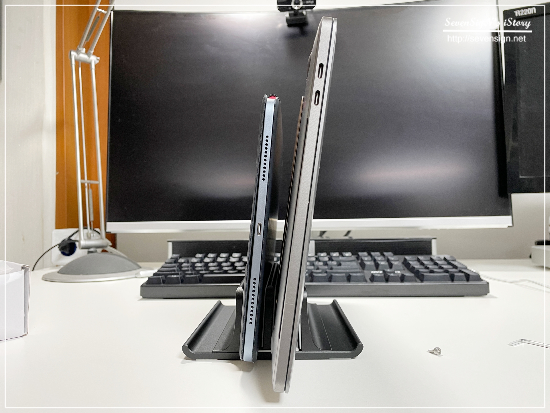 | 책상위에 그냥 올려두는 것도 크게 불편한 건 없었지만, 안정적 세워둘 수 있어서 책상을 더 넓게 사용할 수 있어 좋은 것 같습니다. :)