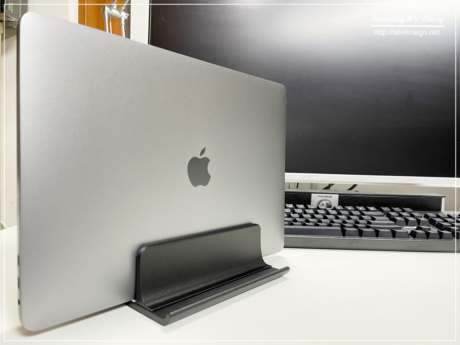 | 맥북을 스탠드로 해두고 외부 모니터로 사용하는 분들은 공간을 절약하는데 도움이 될 것 같네요.