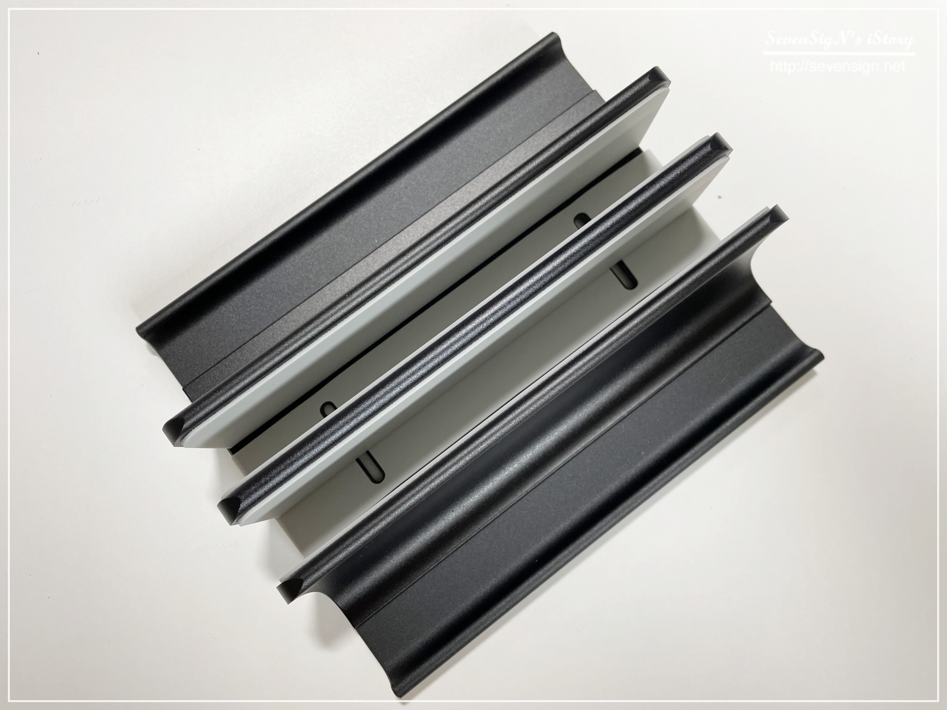 | 기기가 맞닿는 부분은 실리콘 패드가 부착되어 있어서 기기에 스크래치가 발생하지 않도록 해줍니다. 바닥과 지지대 측면에 부착이 되어있죠.