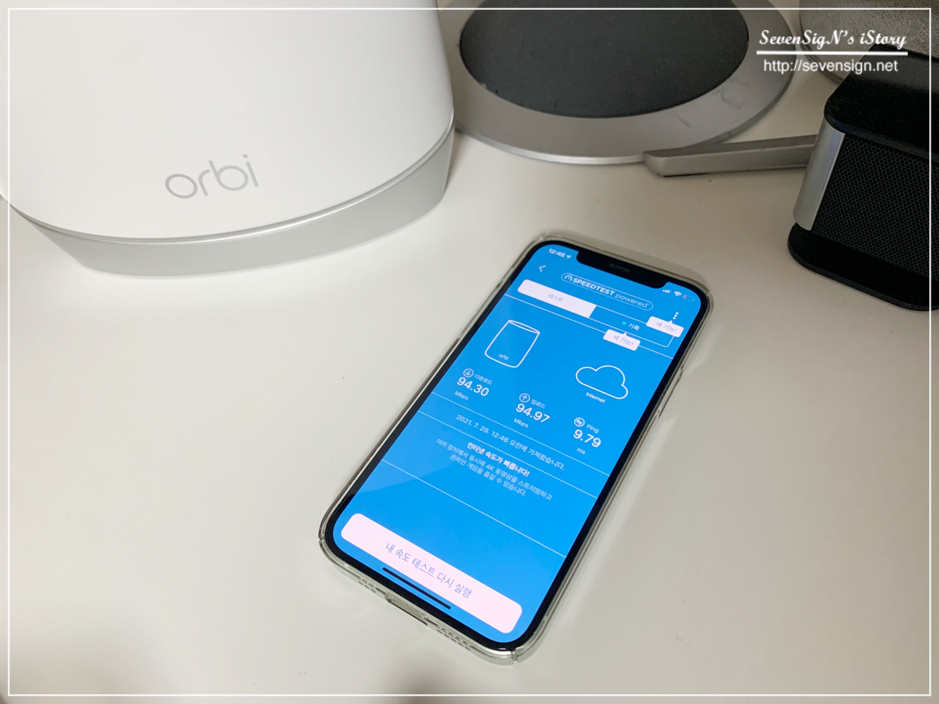 | 저희집 네트워크 상태가 현재 양호하지 못한데 속도 테스트 결과롤 확인해볼 수 있었던 것 커버리지가 정말 확대되었냐이죠. 실제로 라우터와 새틀라이트 근처에서 측정해본 다운로드 속도가 큰 차이가 없더라구요. 이렇게 음영지역 해소에 확실히 효과가 있다는 걸 체감할 수 있었습니다.
