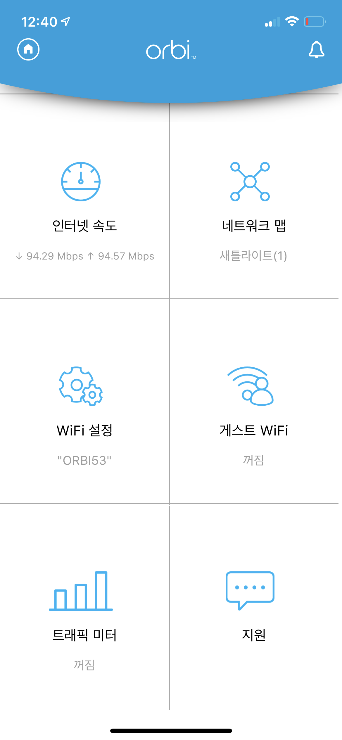 | 이외에도 인터넷속도, 와이파이 설정, 게스트 WiFi 등의 기능을 직관적인 UI를 통해서 손쉽게 변경 및 관리할 수 있기 때문에 오르비를 사용한다면 오르비 전용 앱은 꼭 함게 사용하는 것이 좋습니다.