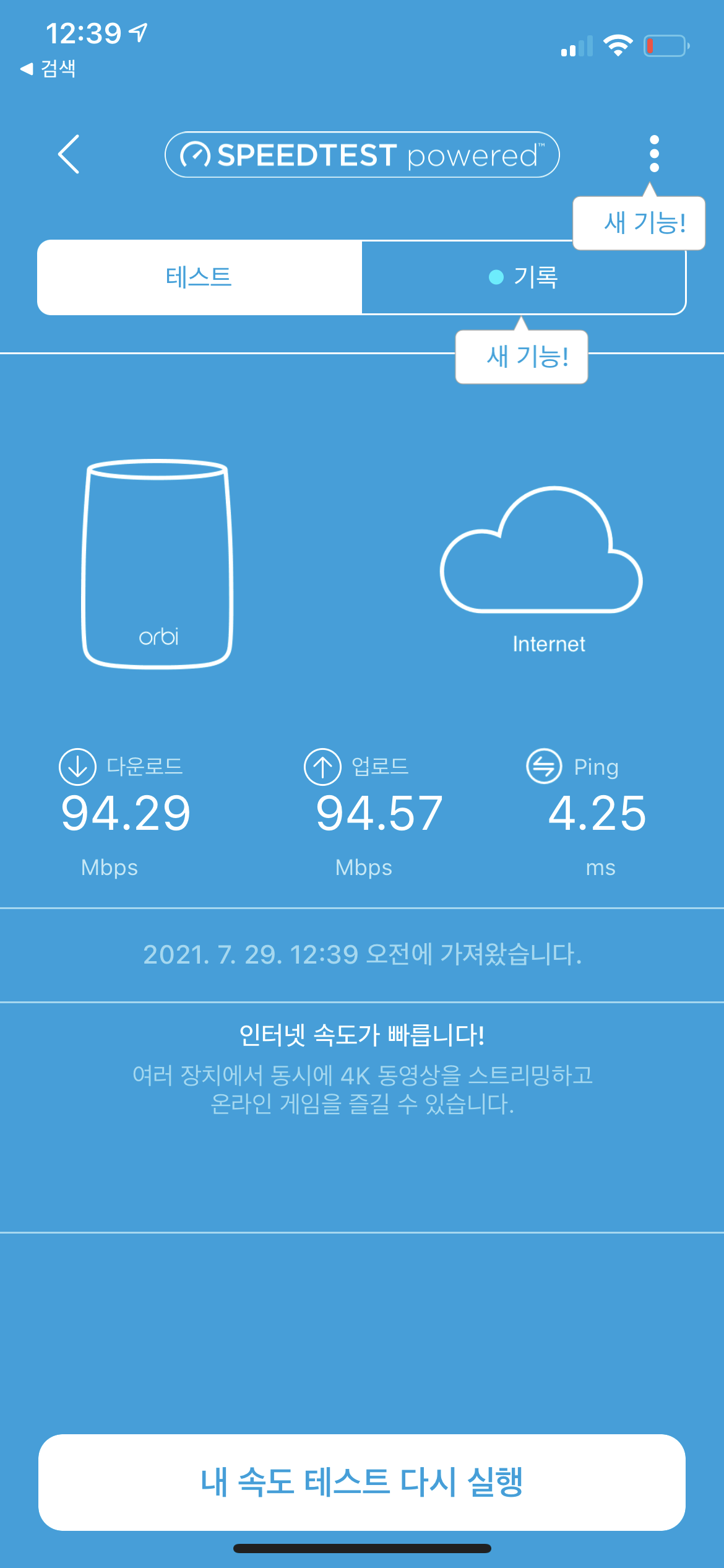 | 저희집 네트워크 상태가 현재 양호하지 못한데 속도 테스트 결과롤 확인해볼 수 있었던 것 커버리지가 정말 확대되었냐이죠. 실제로 라우터와 새틀라이트 근처에서 측정해본 다운로드 속도가 큰 차이가 없더라구요. 이렇게 음영지역 해소에 확실히 효과가 있다는 걸 체감할 수 있었습니다.