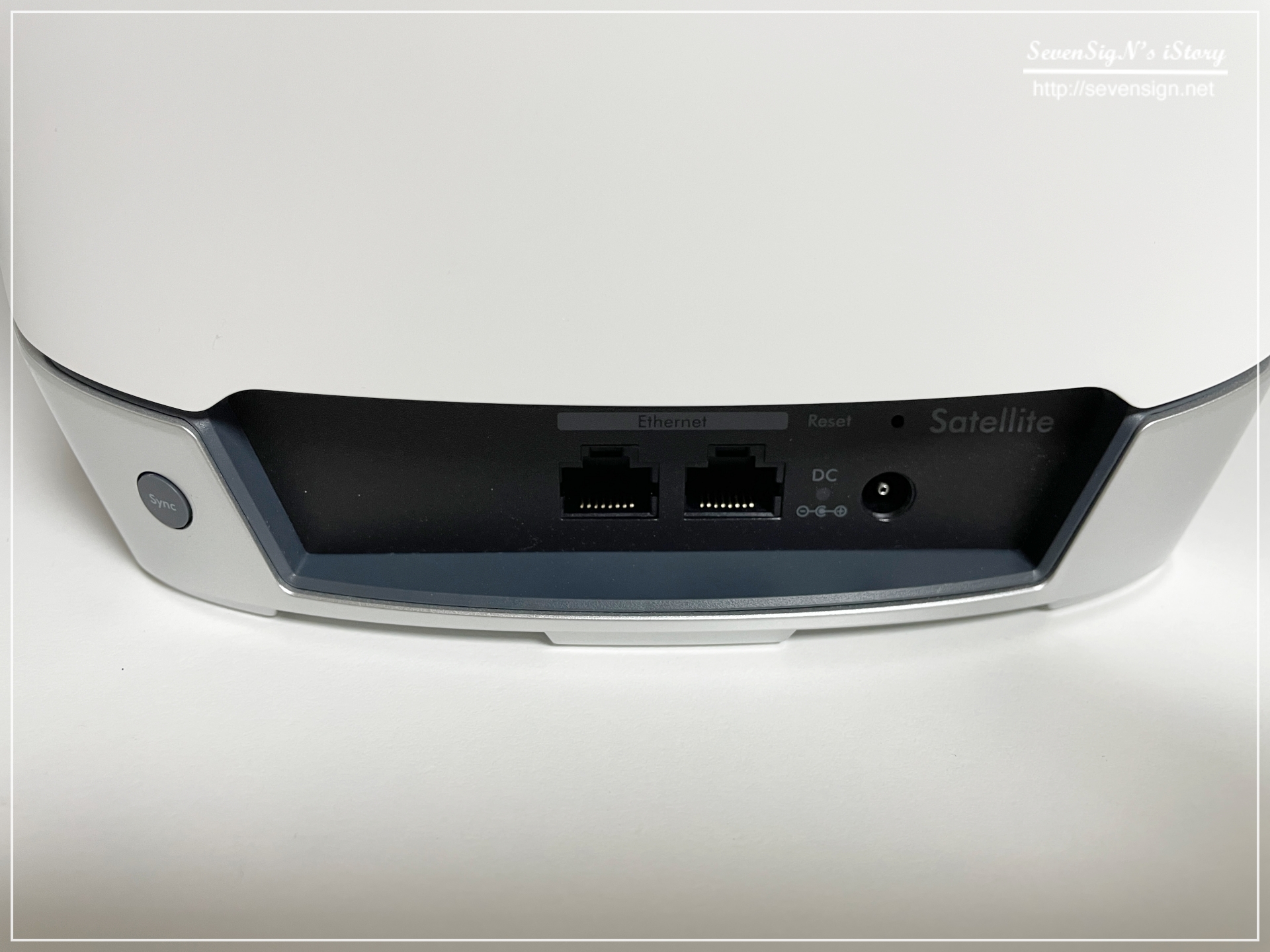 | 새틀라이트에는 역시 Sync 버튼이 있고 라우터와 달리 이더넷 LAN포트만 있는것을 확인할 수 있습니다.