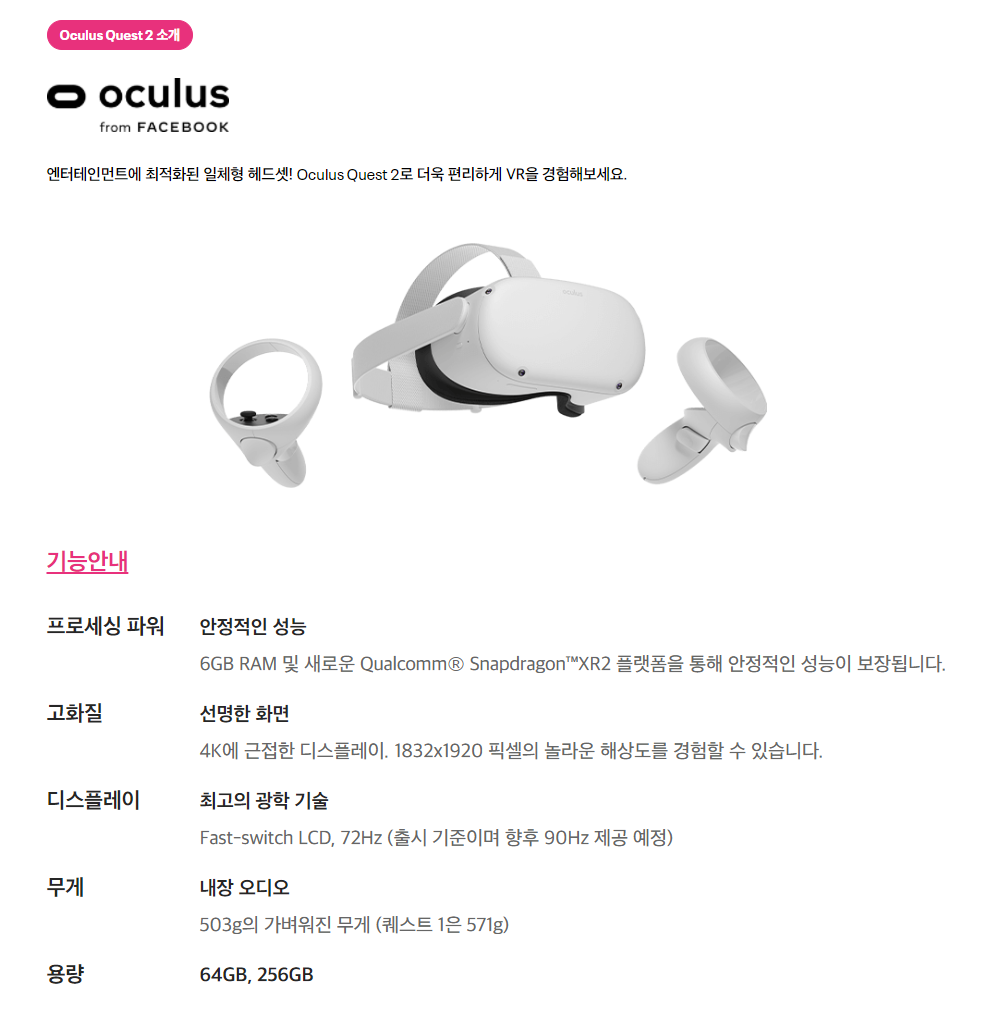 오큘러스 퀘스트 2 내용은 SK텔레콤 페이지에서 한번 살펴보세요.