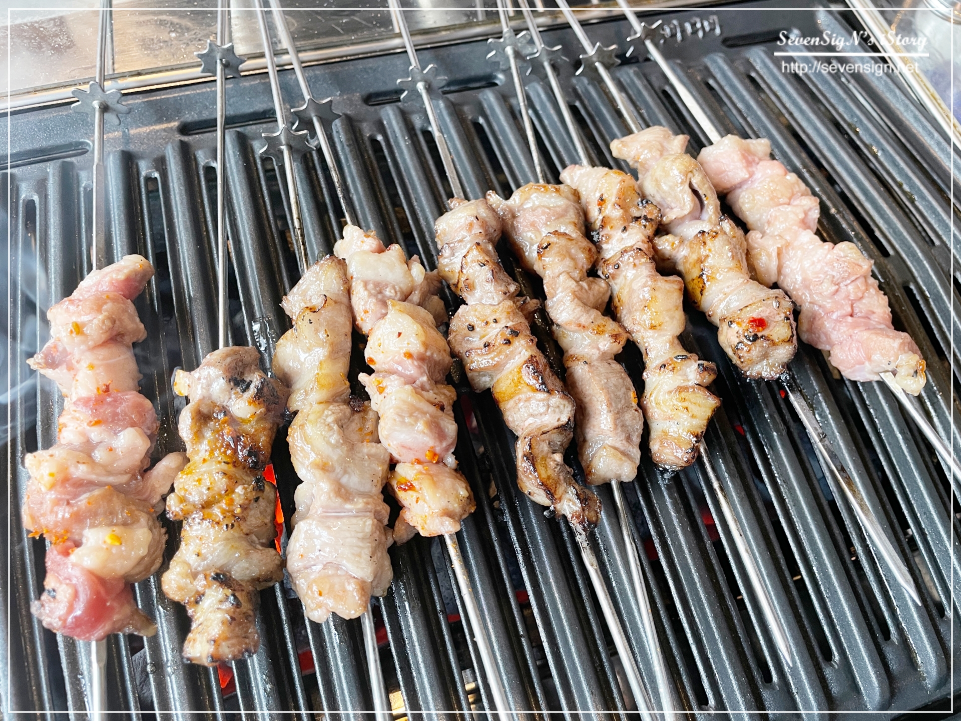 불판위에 양꼬치, 소꼬치도 그대로 올려서 뒤집어가며 구워먹으면 되는데요,