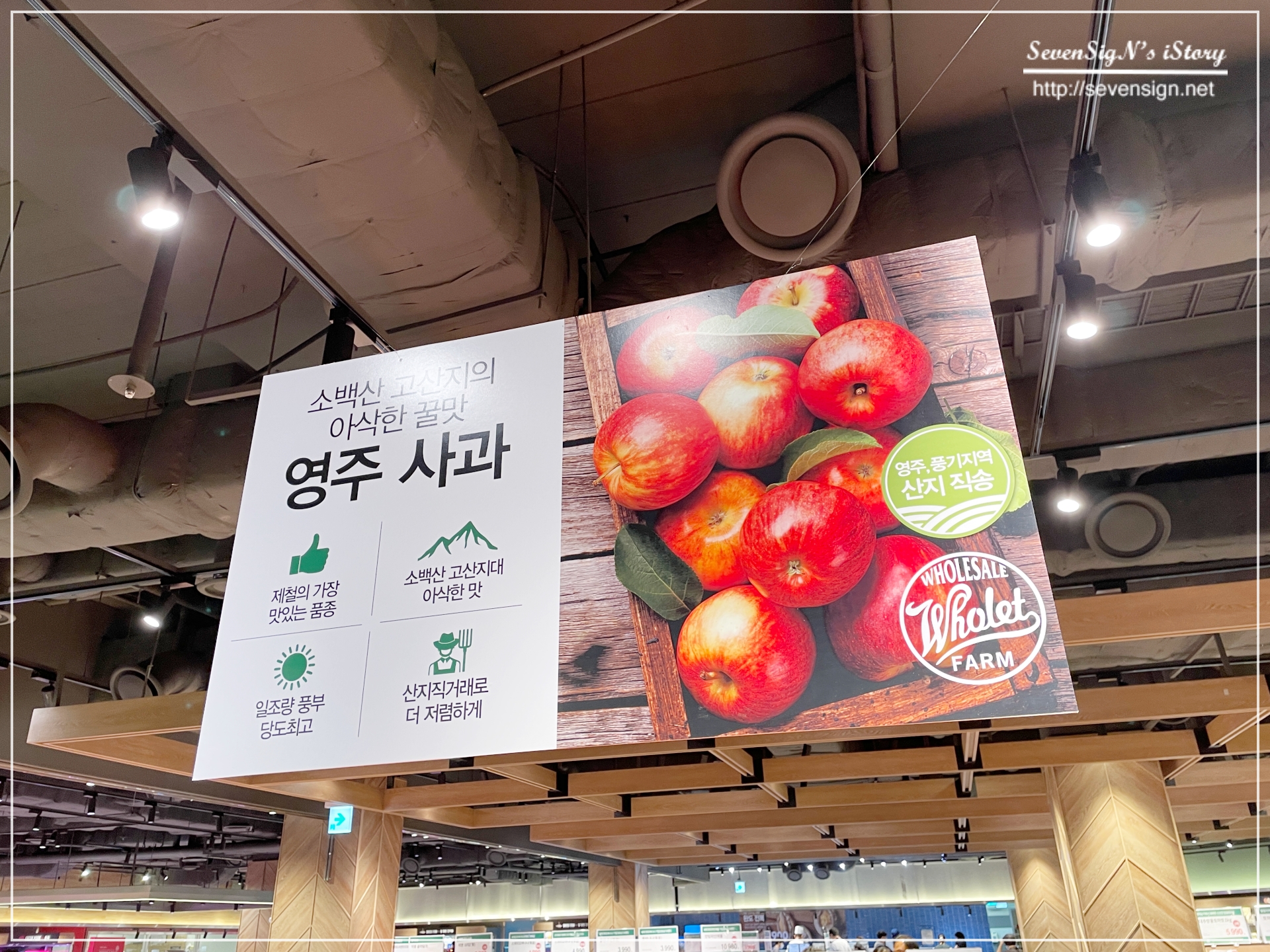 홀렛 팜 코너에서는 산지직성된 사과 등 천도 복숭아, 수박 등등 보기만해도 군침도는