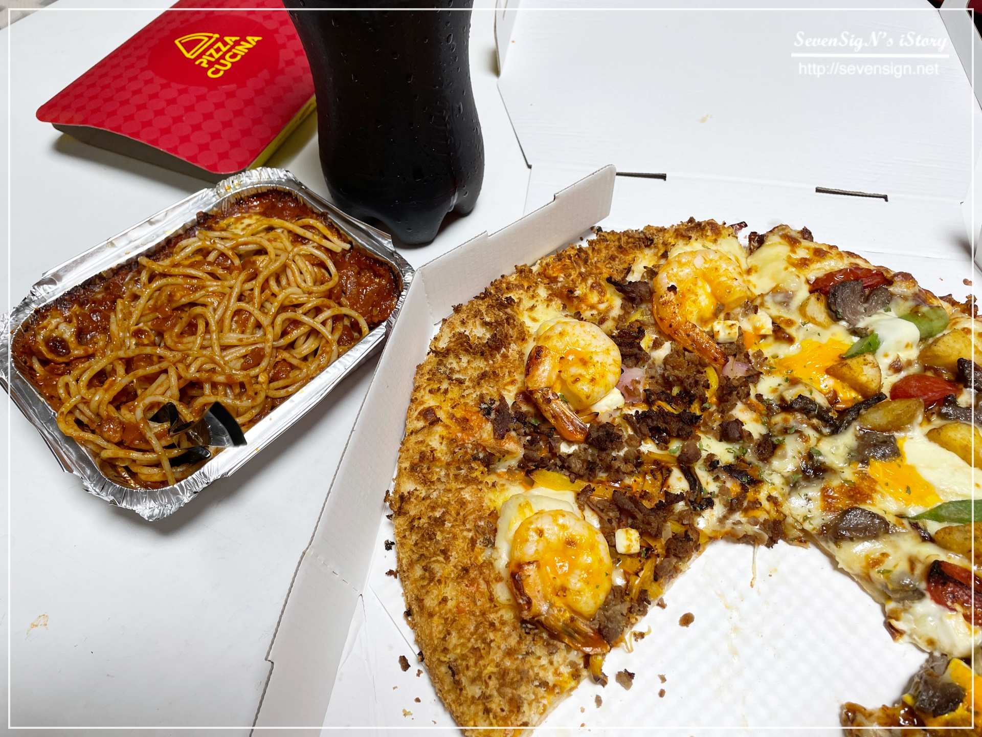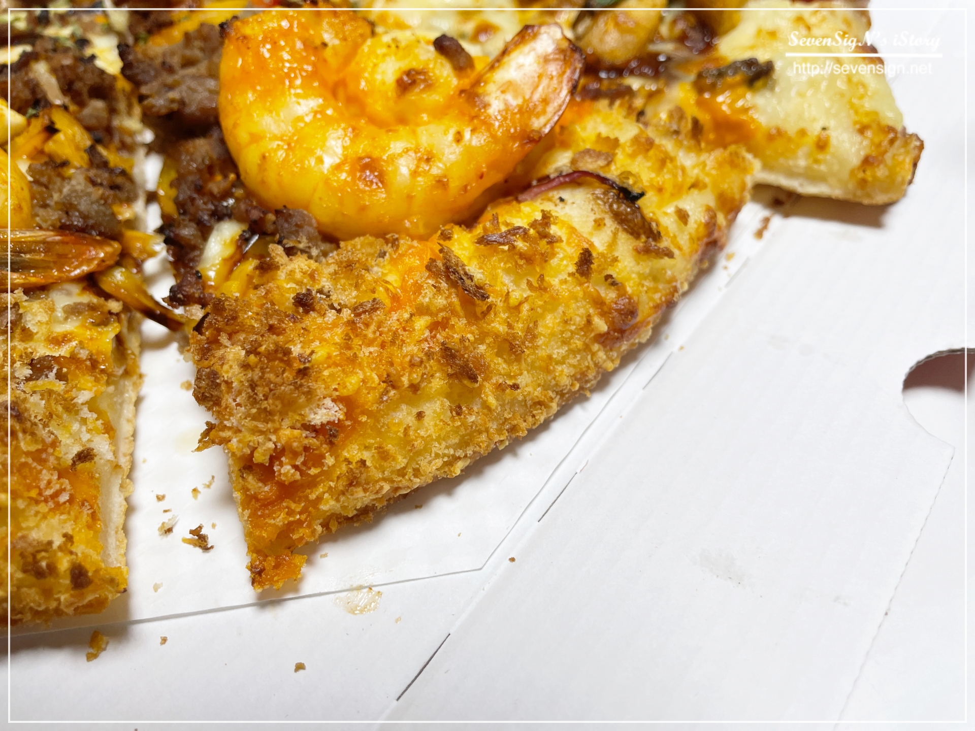 유난히 바삭한 구성이라 먹는 재미까지 있었던 쉬림프 피자입니다.