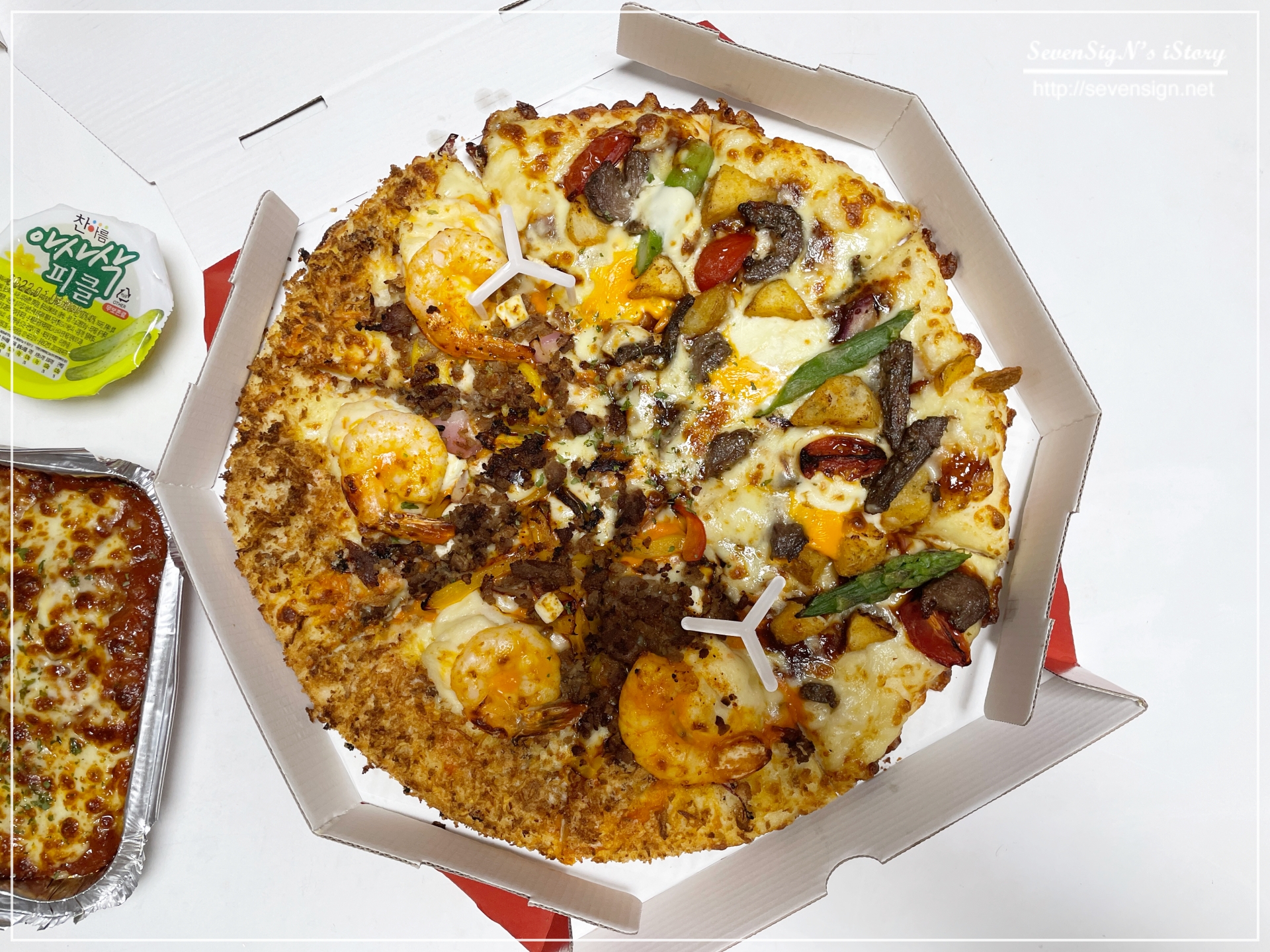 고기 좋아하는 아이와 새우 좋아하는 저를 위한 피자입니다 ㅋ