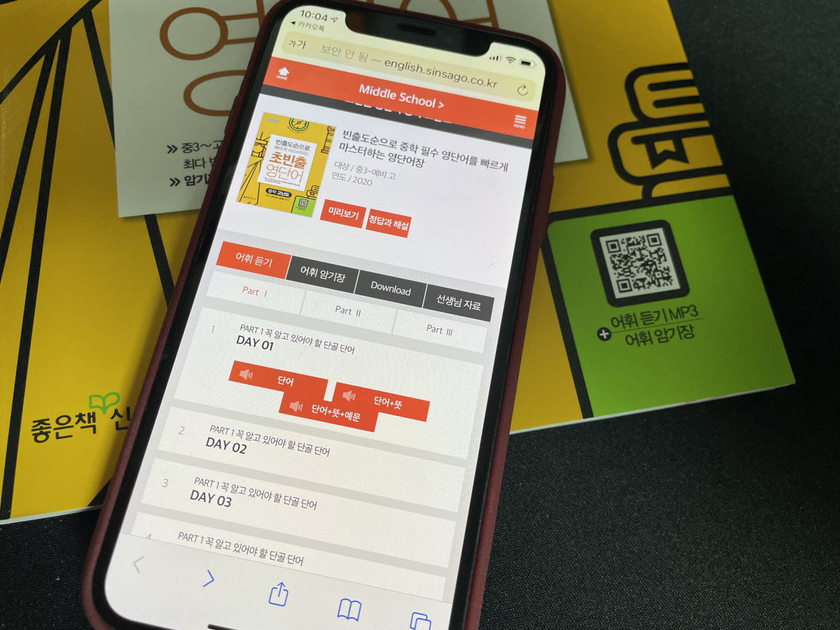 어휘 듣기 MP3 파일을 들을 수 있도록 QR코드를 제공하고 있어서