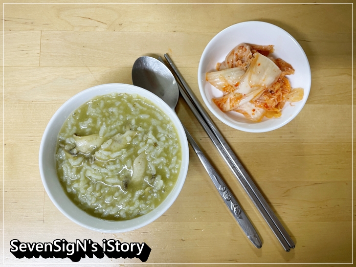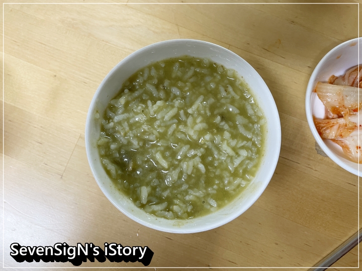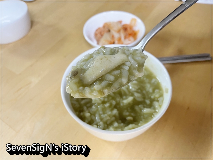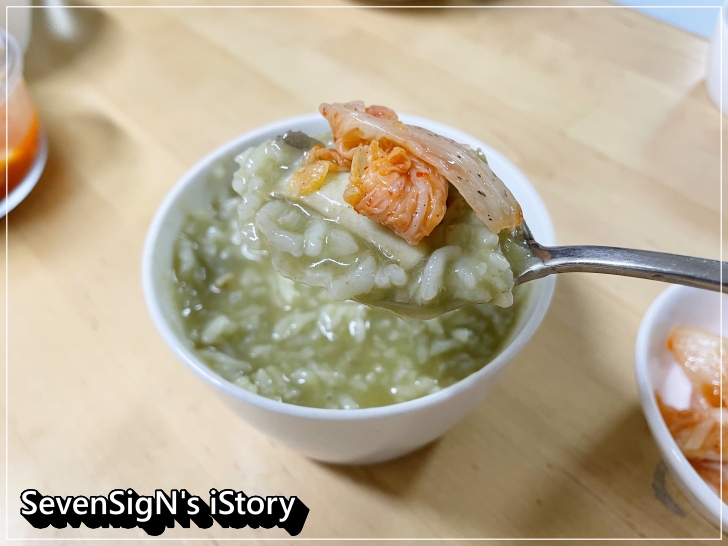 김치 하나 올려주니 전복죽 맛이 배가 되더라구요~
