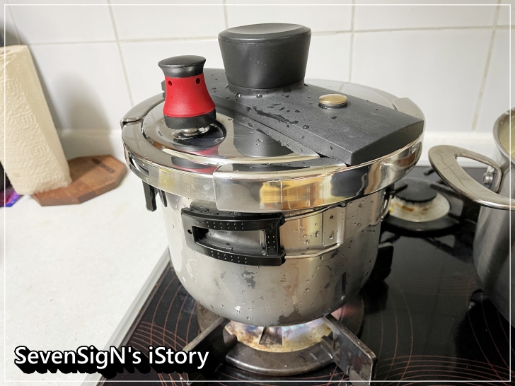 중간에 압력추 소리가 나면 중-약 불로 줄여주고 5분간 더 끓여줍니다.