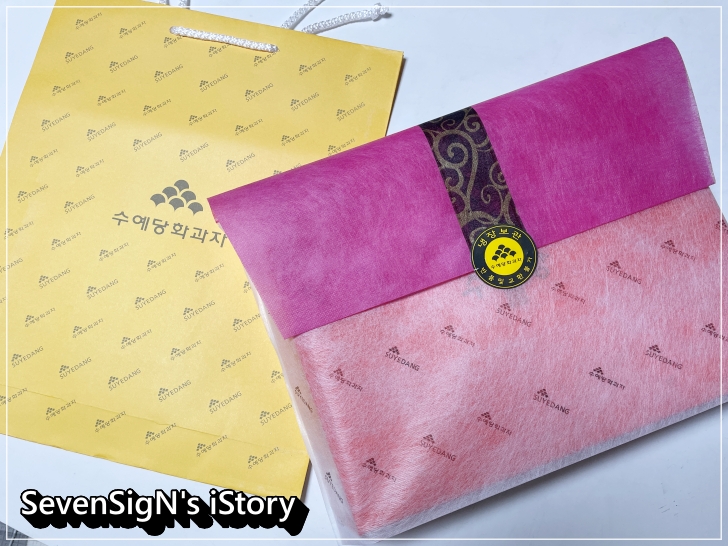 수예당 화과자는 쇼핑백과 수예당 화과자만의 전통미 넘치는 포장재가 함께 오기 때문에