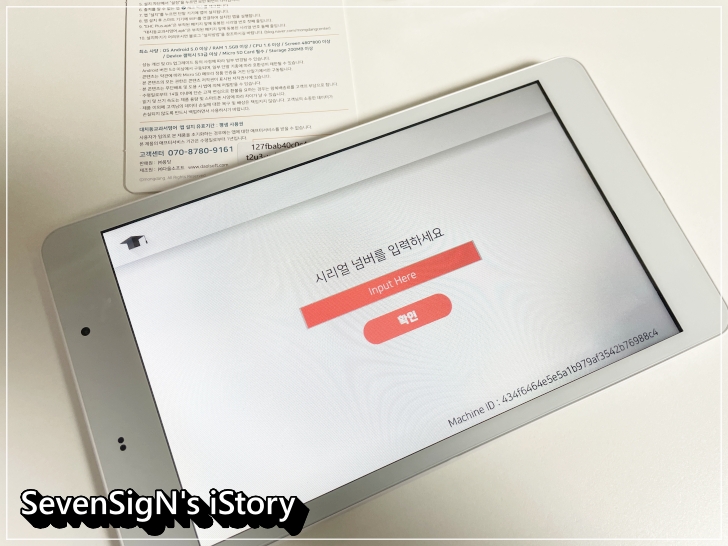 등록을 하기 위한 절차로 마이크로SD카드 패지지의 종이에서 확인할 수 있습니다.