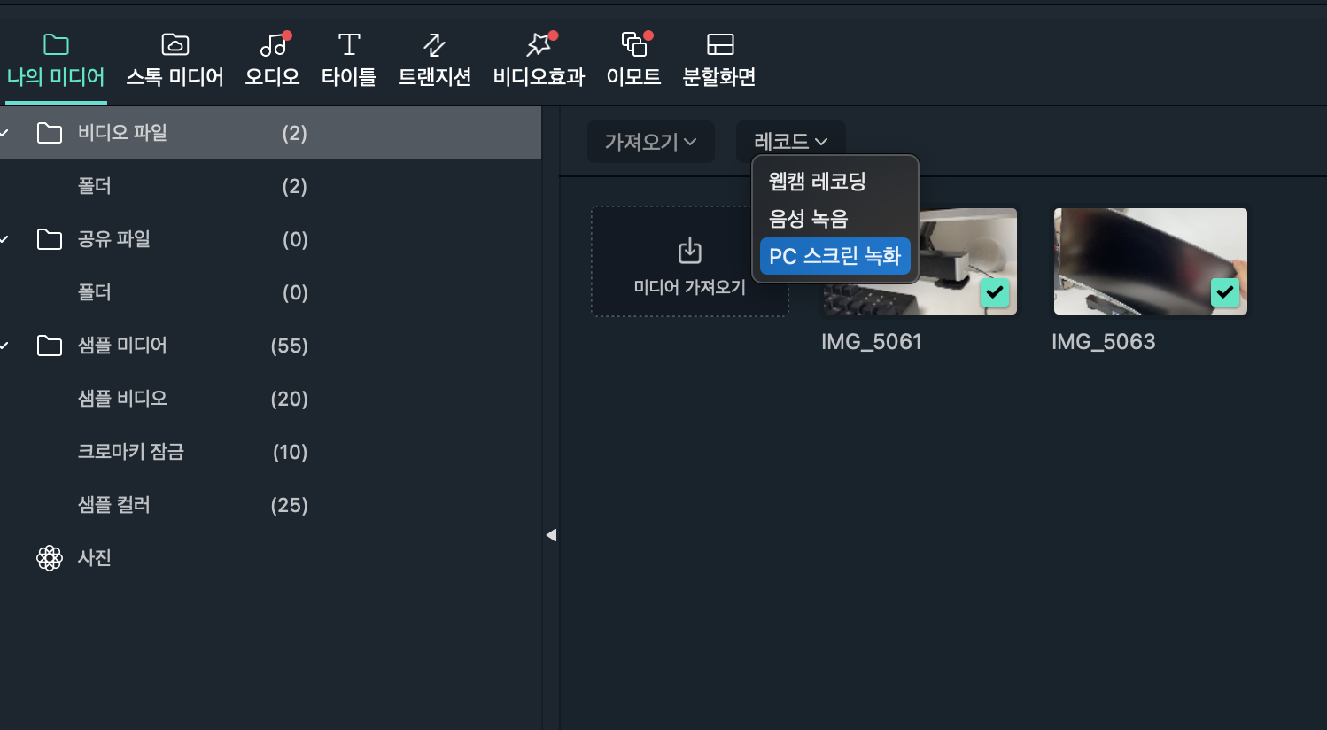 전 이 중에서 PC 스크린 녹화를 해봤습니다.