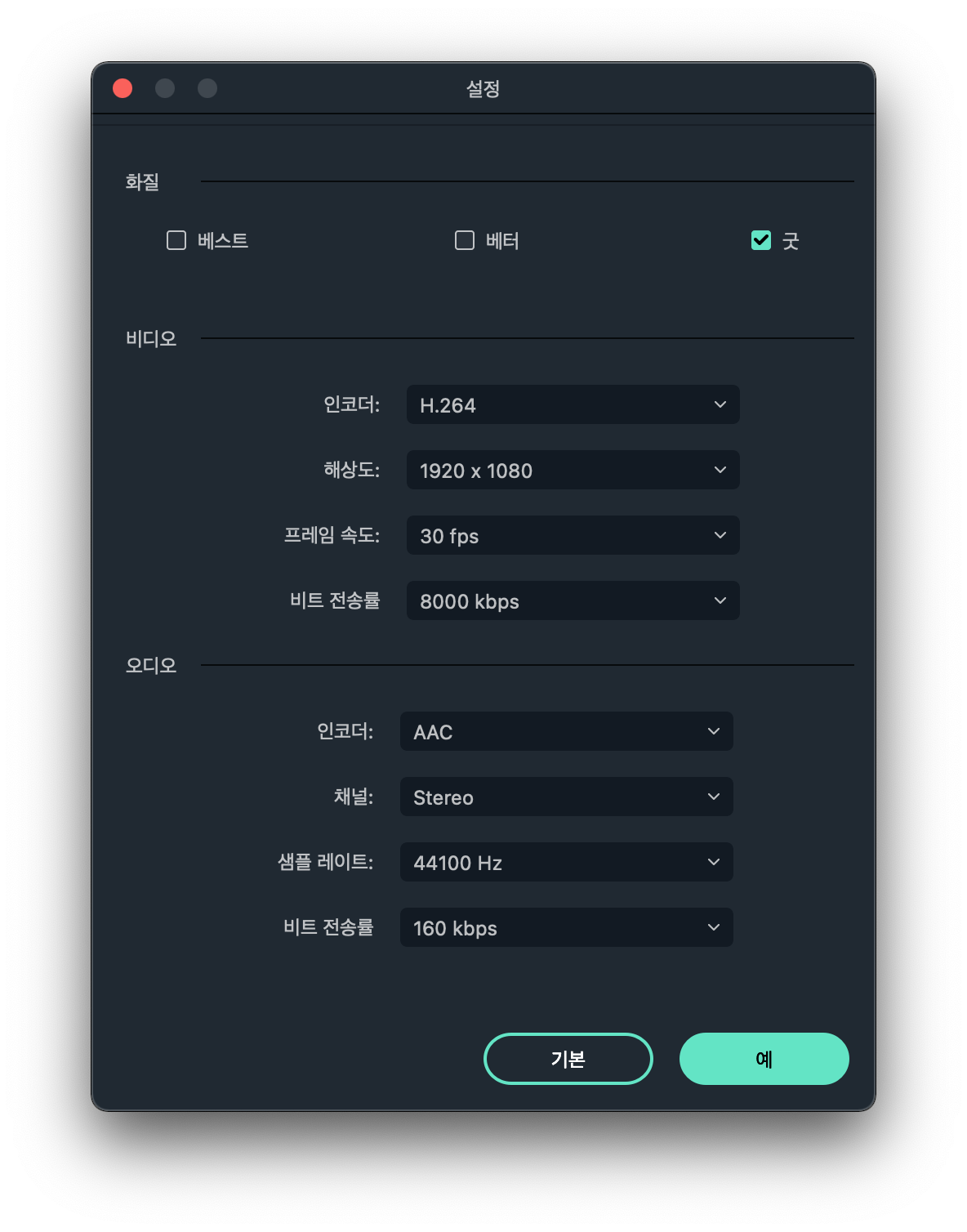 영상을 이용할 디바이스를 감안해 적당하게 선택하면 되겠죠.