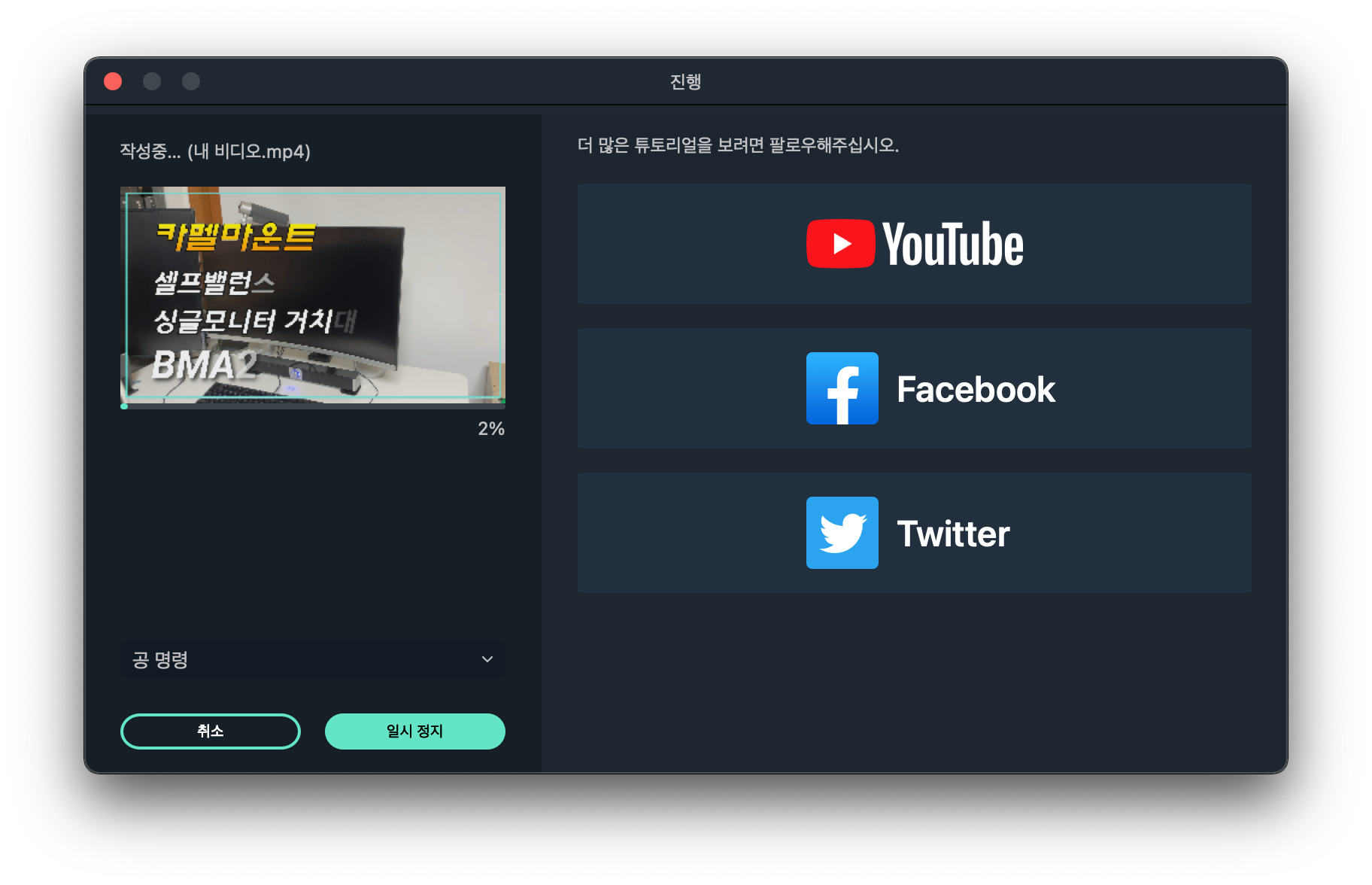 내보내기 버튼을 눌러서 영상을 저장했습니다.