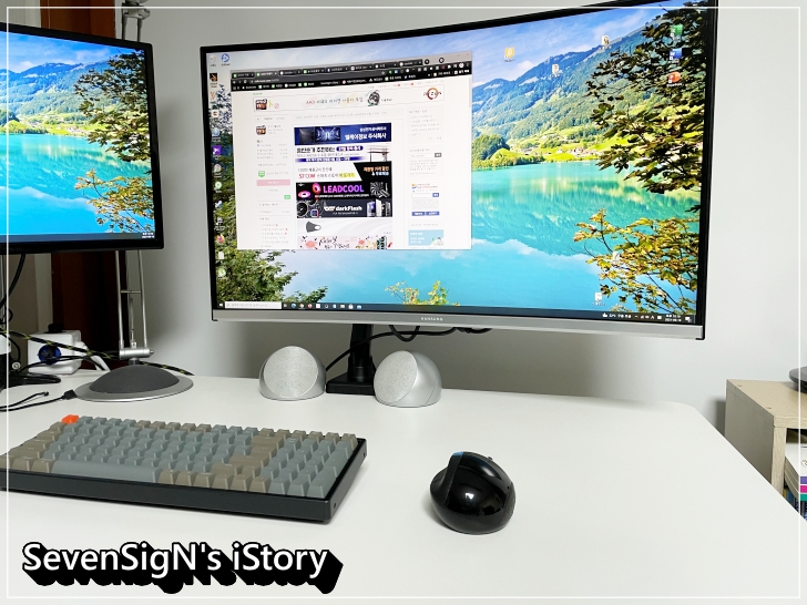 | 아이맥을 주로 사용하다가 데스크탑에 관심을 가지면서 32인치 모니터를 들이고 든 생각이 모니터암이라는 걸 나도 한번 써보고 싶다는 거였습니다. 아이맥을 듀얼모니터로 사용하지도 않다보니 모니터 거치대라는 것에 관심이 아예 없었는데, 책상위에 32인치 커브드 모니터를 올려보니 모니터암에 자연스럽게 관심이 가더라구요.