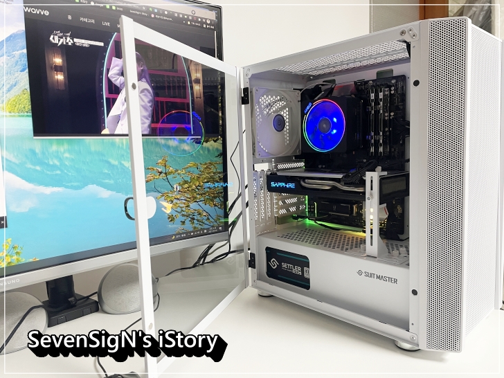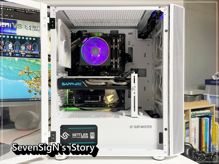 여유로운 설치공간, 수직 PCI 슬롯 지원, 그래픽카드 지지대 기본 포함 등 여러가지 구성요소와 케이스 성능까지 마음에 든 앱코 SUITMASTER P1000 강화유리(화이트) 케이스입니다. 이제 이 녀석이 메인이네요 :)