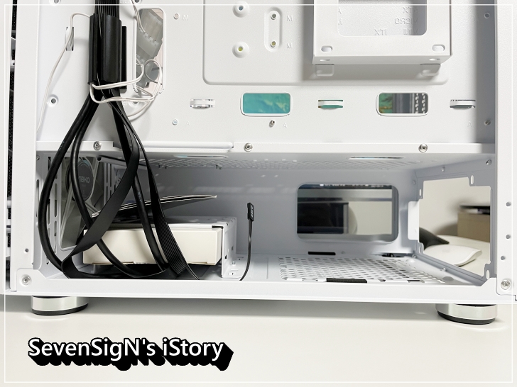 그리고 뒷편으로 케이스를 정리해주는 케이블 홀더가 기본 장착되어 있어서 케이스의 케이블은 1차적으로 정리가 됩니다.