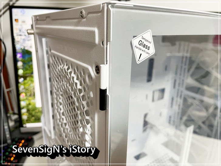 그리고 또 앱코 SUITMASTER P1000 강화유리(화이트) 케이스에서 마음에 드는 점, 바로 도어형 좌측판입니다. 강화유리로 되어있는 좌측판인데 기존에 제가 써본 케이스들과 달리 열고 닫을 수 있어서 불편하게 나사를 돌려 여닫을 필요가 없더라구요.