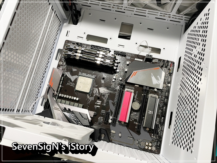 ATX 크기의 메인보드를 위치시켰는데요, 딱 들어가네요. 그래도 윗쪽으로는 선을 빼고 들여올 수 있는 공간이 있습니다.