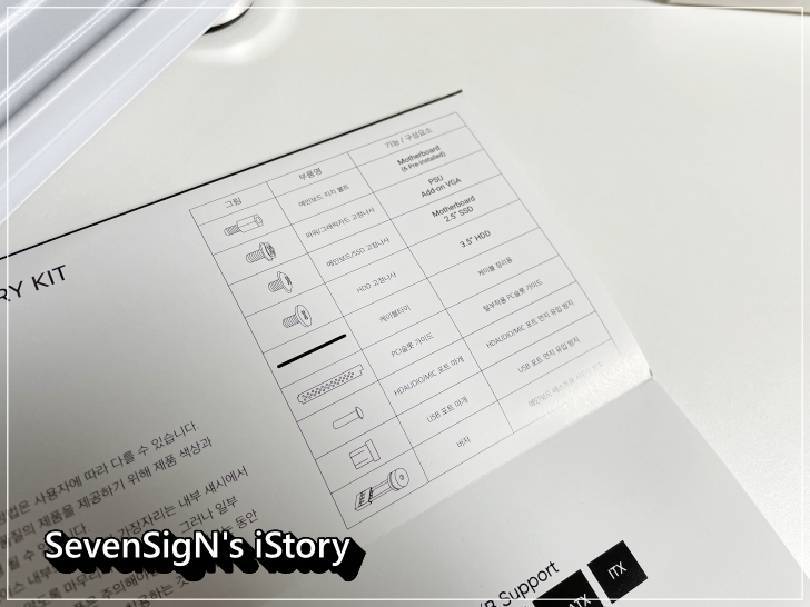 이번엔 반대푠 쪽을 볼까요? 하단 HDD 트레이에 보면 기타 부속품이 있는 상자가 있습니다