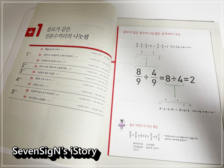 각 단원별로 연산 문제에 대한 주요 풀이 개념을 설명해주고 있어서