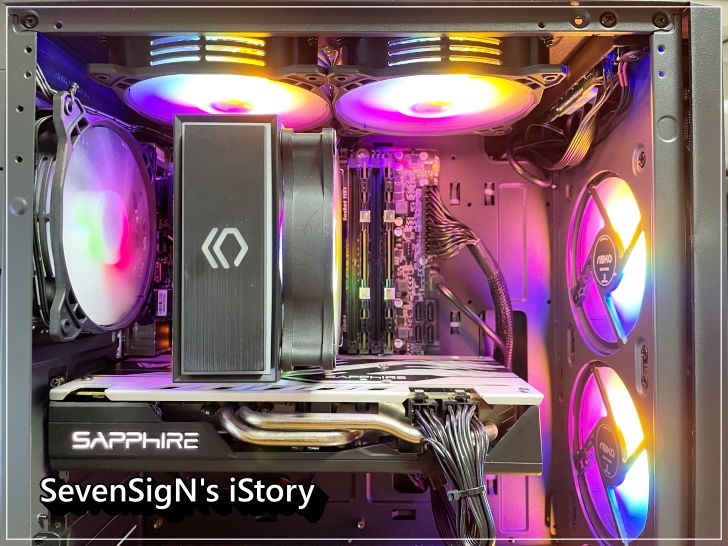 짜잔~ 드디어 장착이 완료된 모습입니다~ 일단 광량 풍부한 RGB가 뿜어져 나오니 뿌듯하네요 ㅋ 맘이 급해서 그래픽카드 전원선을 깜빡 ㅋ