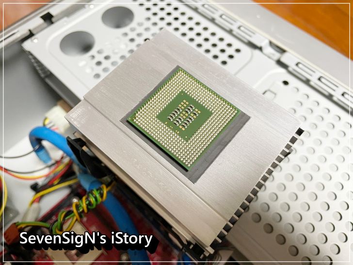 이런게 바로 무뽑입니다. ㅎ 쿨러를 보드에서 분리할 때 CPU가 쿨러바닥에 붙어서 뽑혀버리는 현상을 말하죠. 제 예전 구형PC 인데 실제로 이렇게 뽑힌 경험이 있습니다. 리드쿨 POONG AC-2100 RAINBOW CPU 쿨러에는 바로 이 현상을 예방하기 위한 방지키트가 포함되어 있다는거구요.
