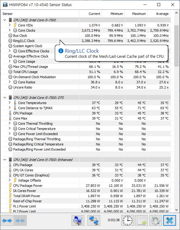 온도를 한번 재봐야겠죠? 기존 장착 쿨러가 기쿨이 아니라 기본 쿨러와의 비교는 안했지만 참고용으로 봐주시면 될 것 같습니다. HWP Info와 CPUID HWMonitor 에서 확인해봤습니다. 별작업이 없는 상태이긴 하지만 괜찮은 것 같네요. 리드쿨 POONG AC-2100 RAINBOW CPU 쿨러는 PWM을 지원하기 때문에 CPU 온도에 따라 최저 900RPM에서 최고 1,800RPM의 속도로 조절이 됩니다.