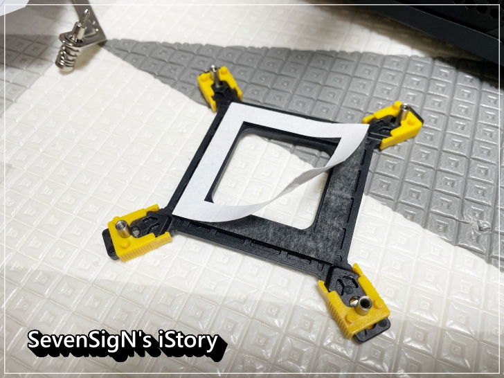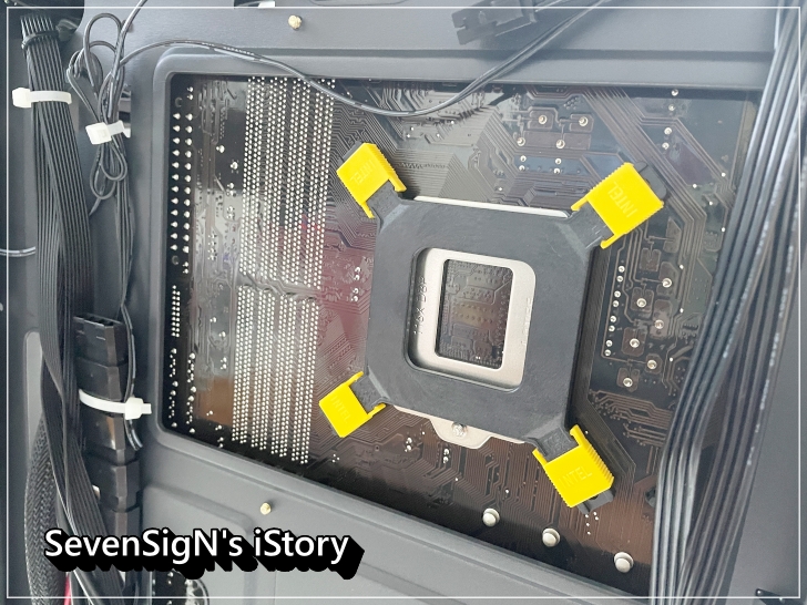우선 백플레이트에 양면테이프를 붙이고 백플레이트를 메인보드 뒷편에 부착해줍니다.