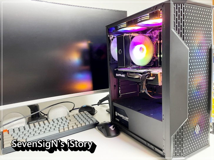 짜잔~ 드디어 장착이 완료된 모습입니다~ 일단 광량 풍부한 RGB가 뿜어져 나오니 뿌듯하네요 ㅋ 맘이 급해서 그래픽카드 전원선을 깜빡 ㅋ