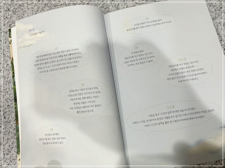여는 글에서는 저자가 적어놓은 시간의 달력 사용 후기(?)가 적혀있는데요,